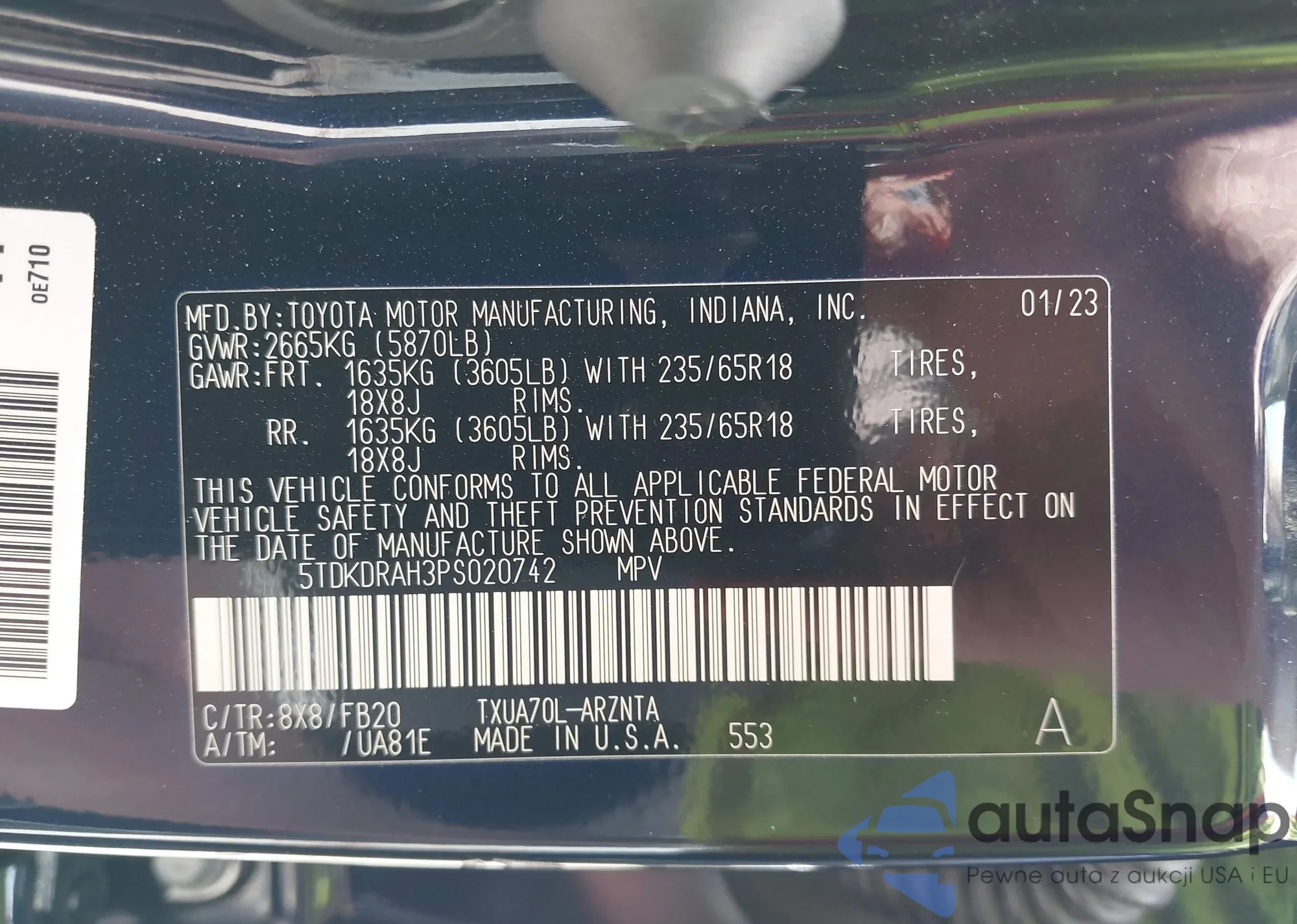 VIN: 5TDKDRAH3PS020742