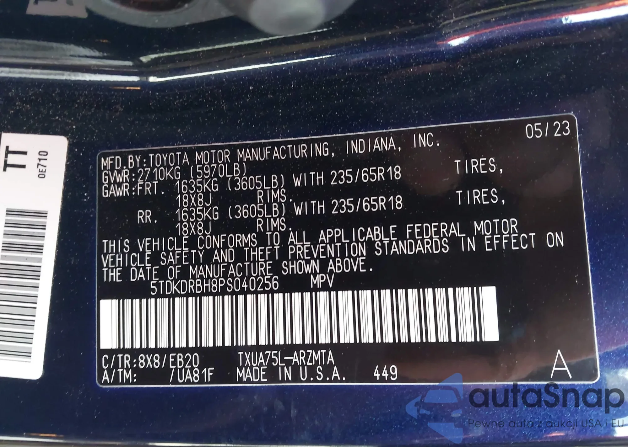 VIN: 5TDKDRBH8PS040256