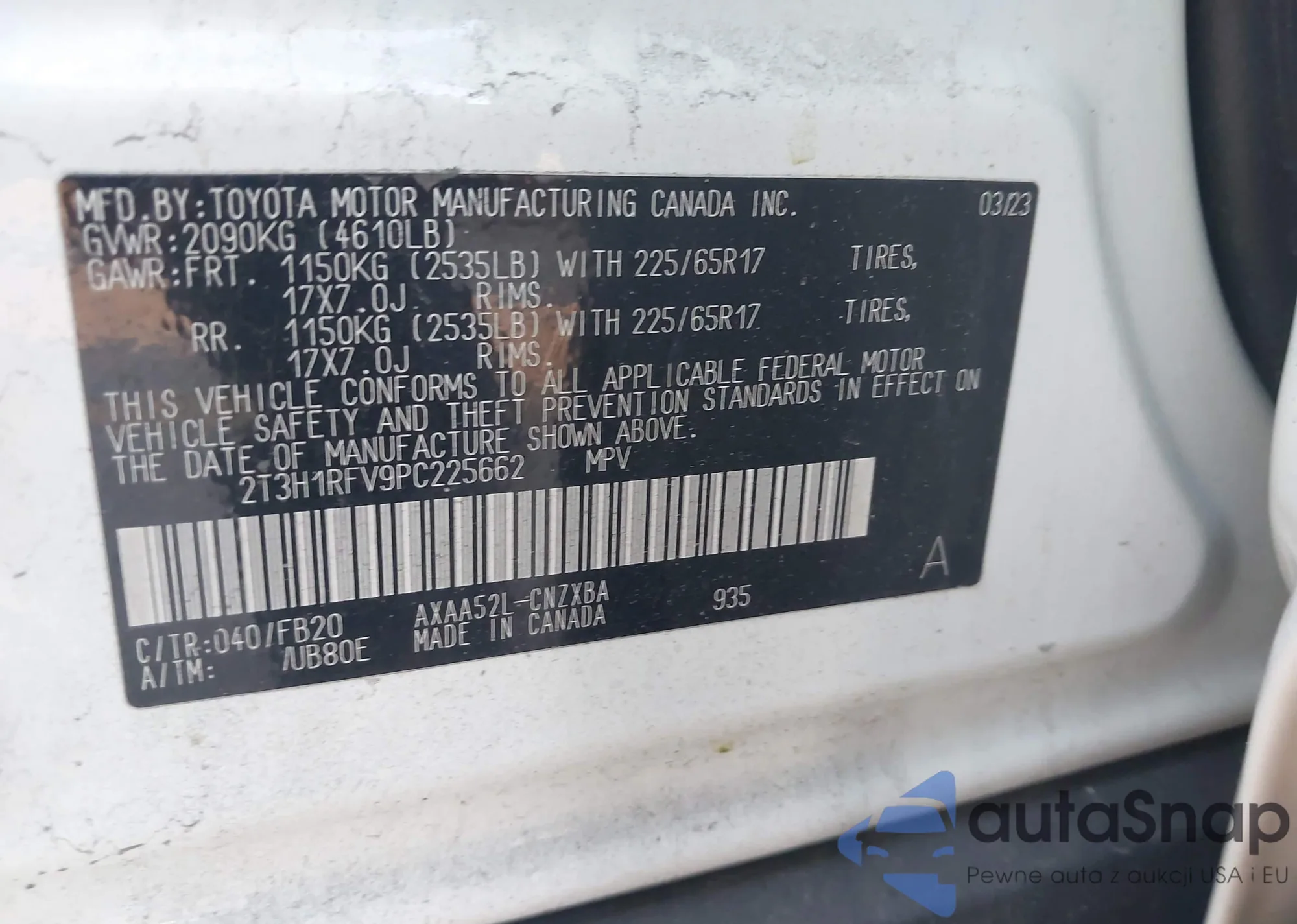 VIN: 2T3H1RFV9PC225662