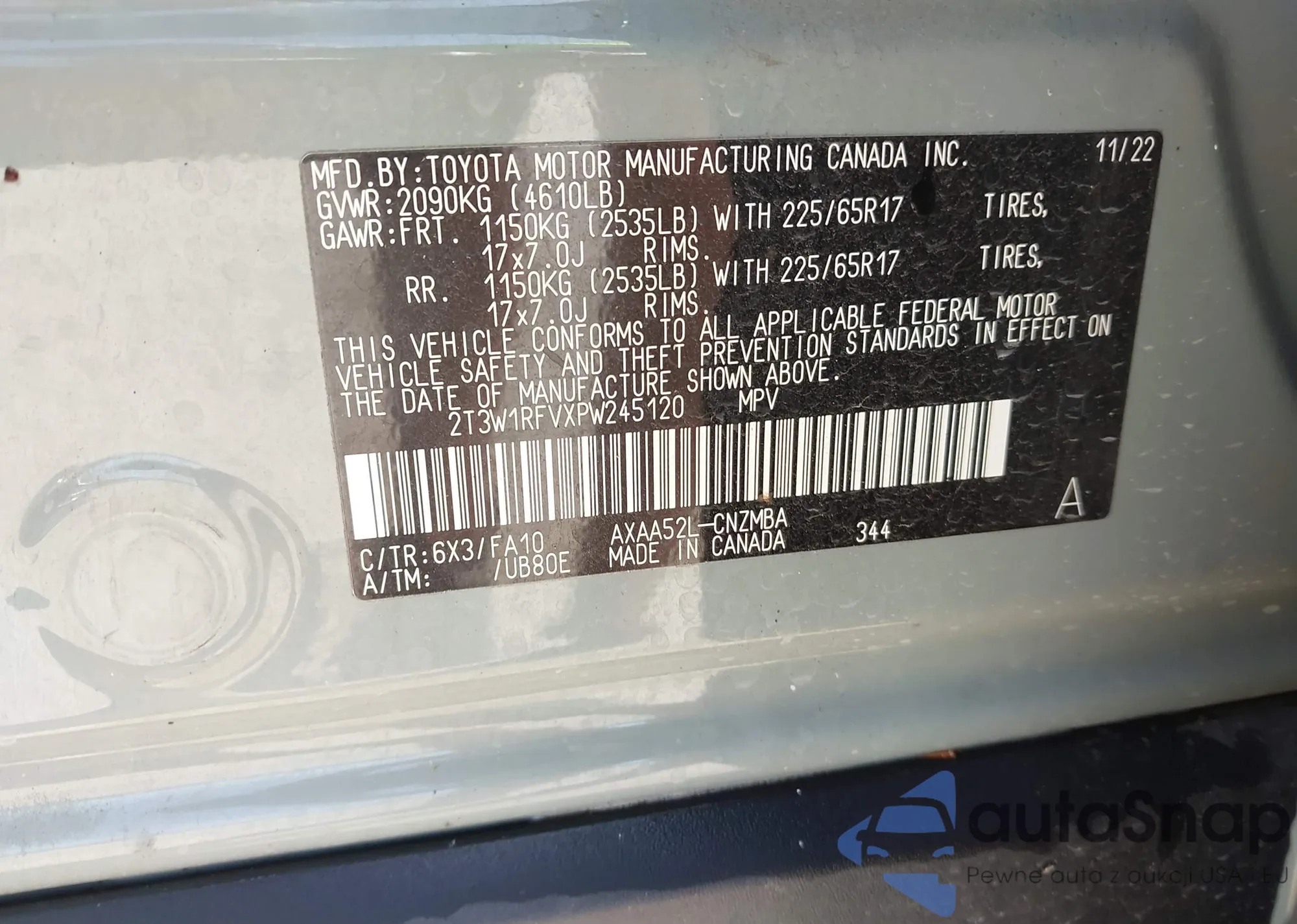 VIN: 2T3W1RFVXPW245120