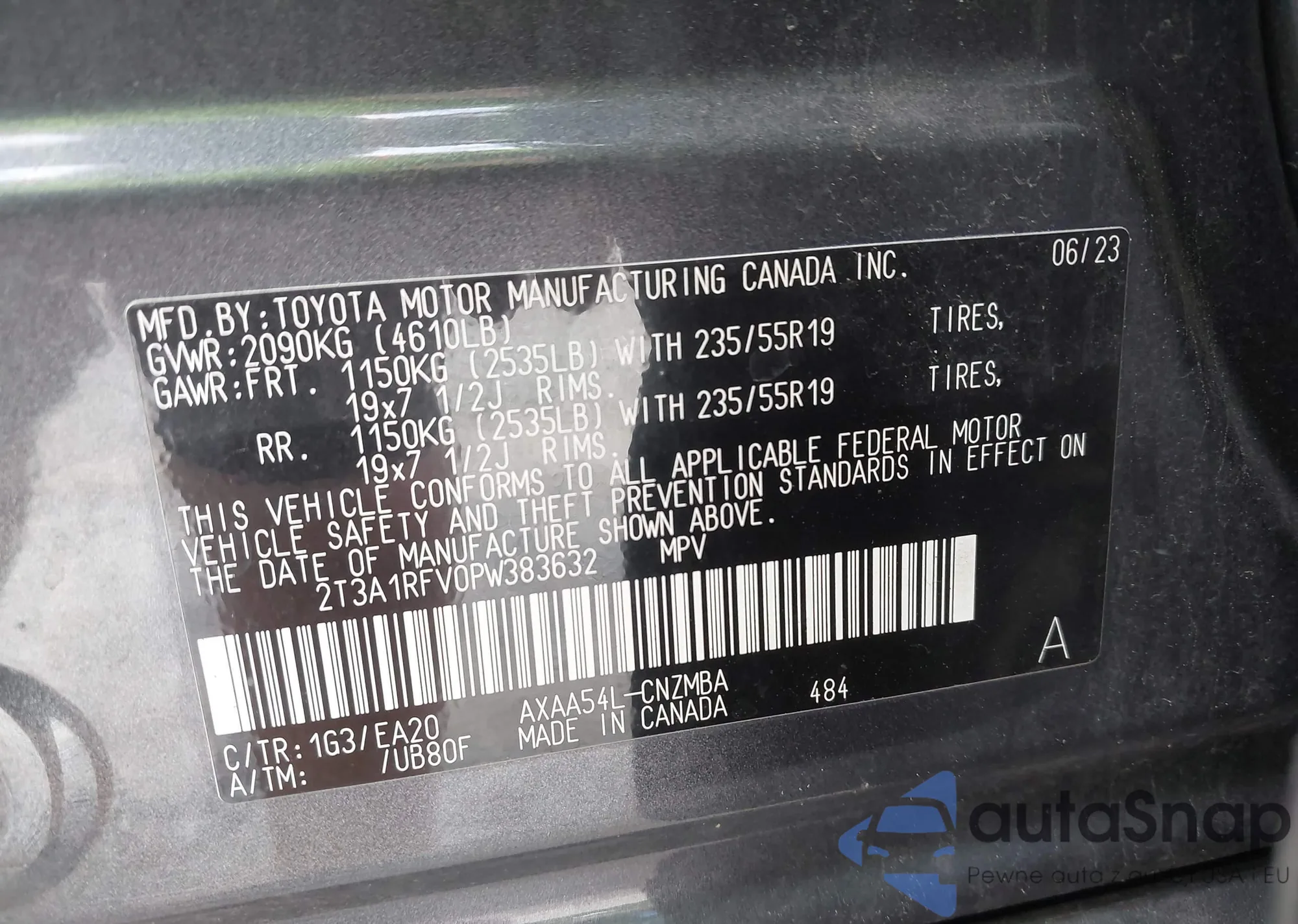 VIN: 2T3A1RFV0PW383632