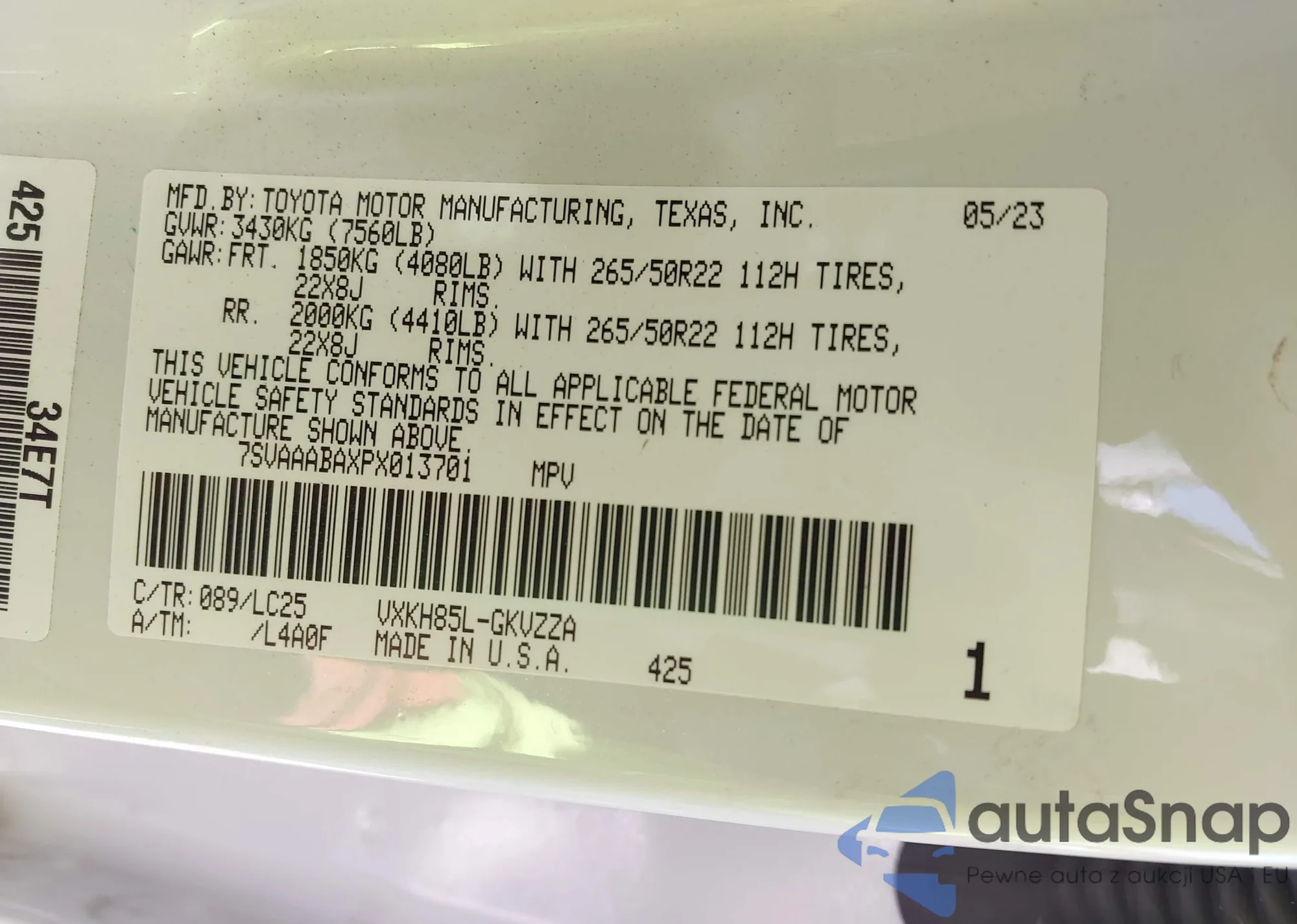 VIN: 7SVAAABAXPX01370