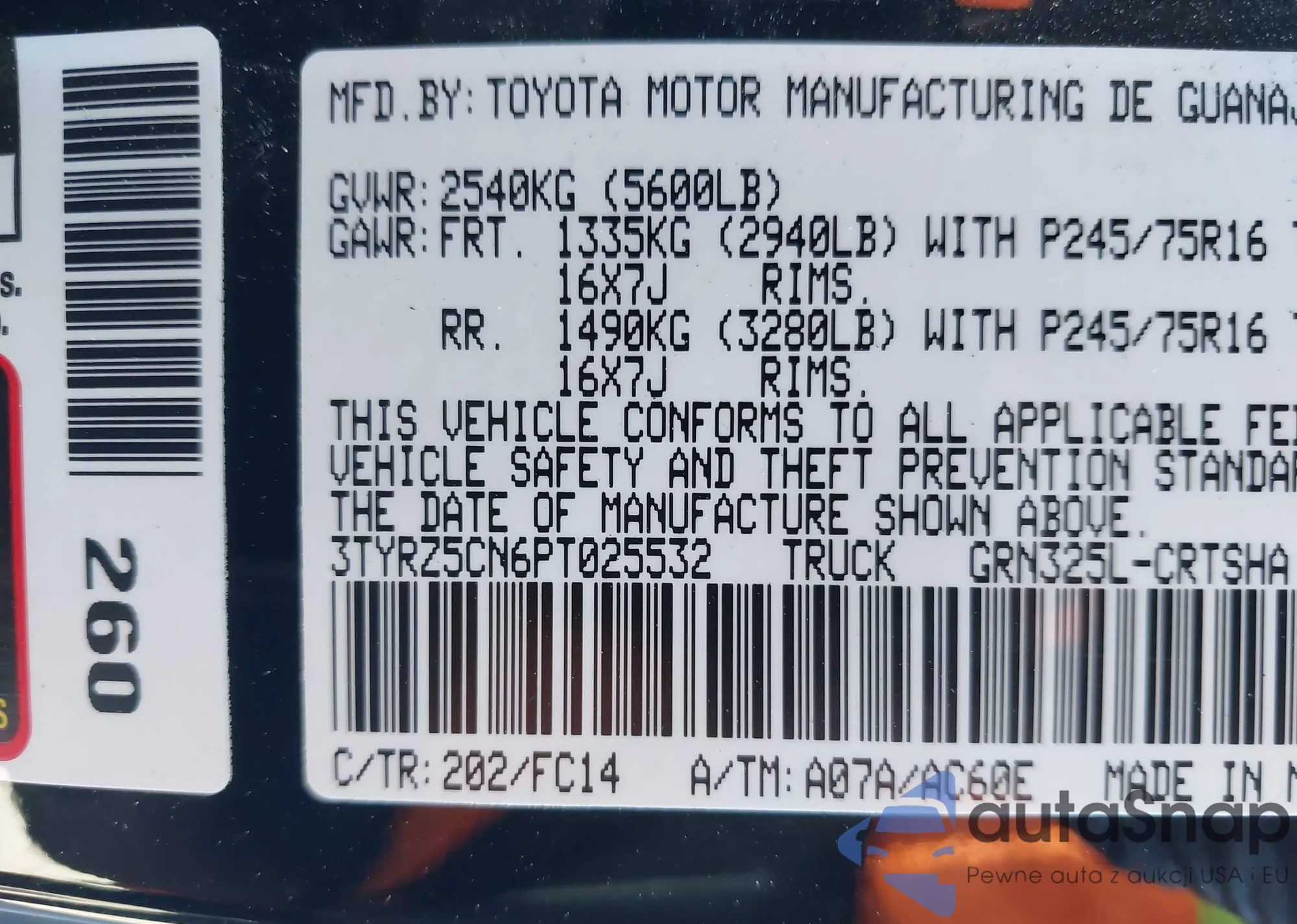 Samochód Toyota Tacoma 2023 (VIN 3TYRZ5CN6PT025532) nie był wcześniej licytowany. Dokumenty są czyste, przebieg odpowiada lub jest niższy niż średnia rynku. Sprzedaje go firma ubezpieczeniowa – polecamy zakup. Dostawa do portu zajmie ok. 6–8 tygodni.