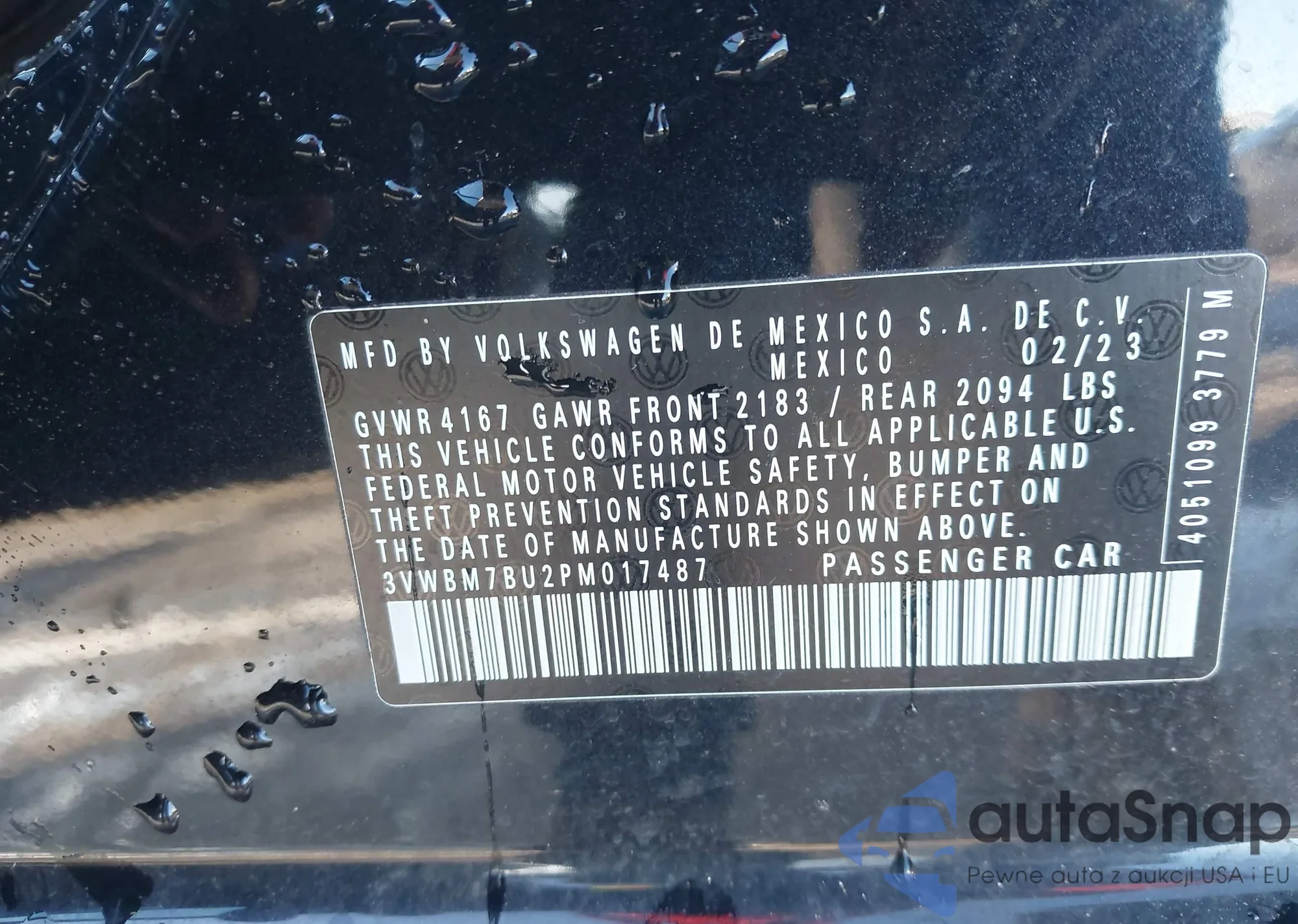 VIN: 3VWBM7BU2PM017487
