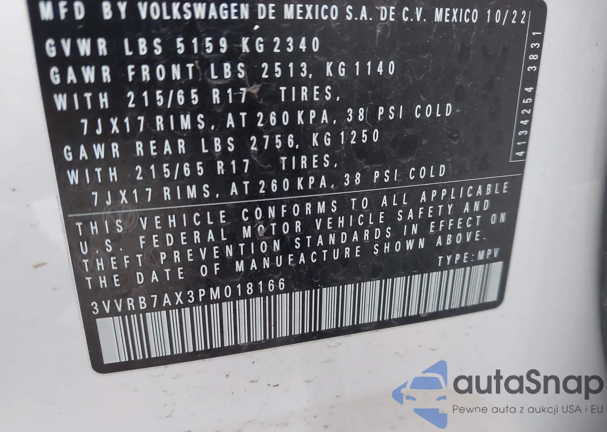 VIN: 3VVRB7AX3PM018166