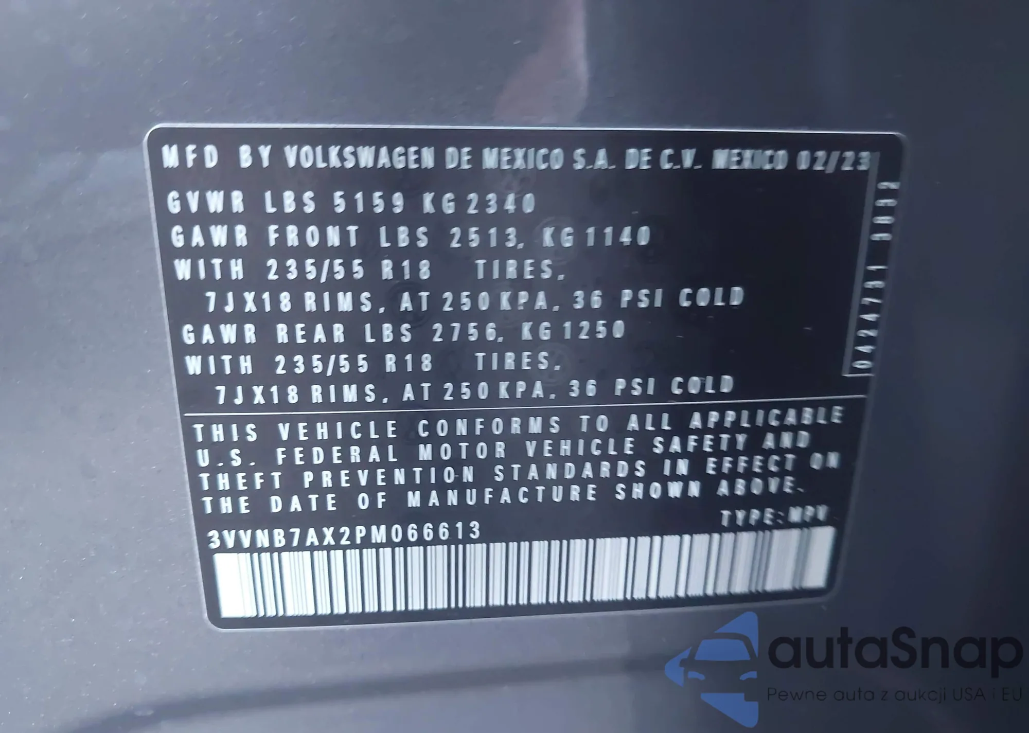 VIN: 3VVNB7AX2PM066613