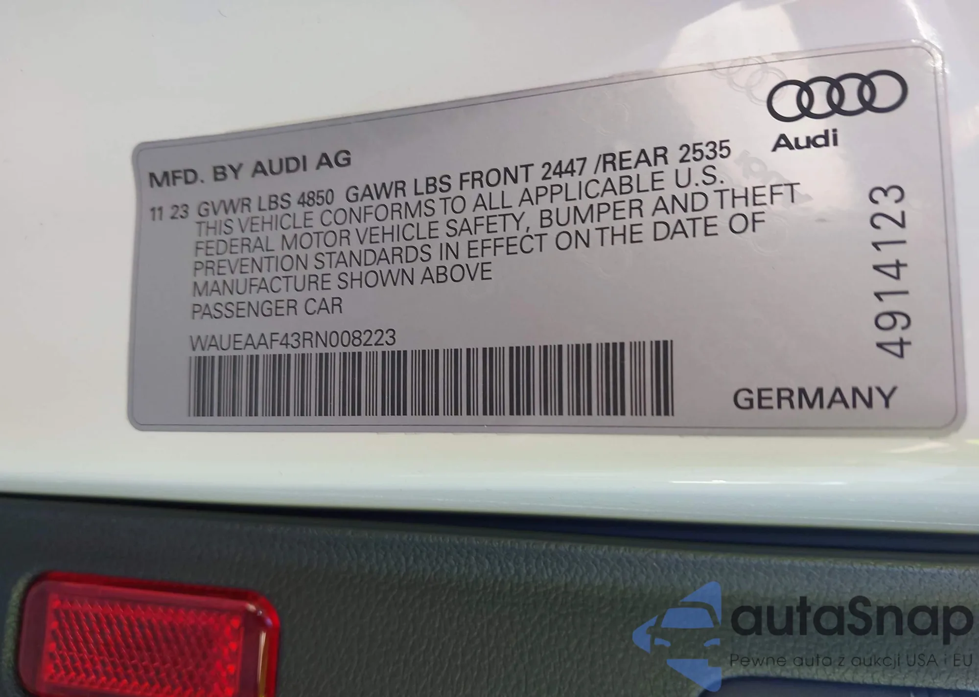 VIN: WAUEAAF43RN008223
