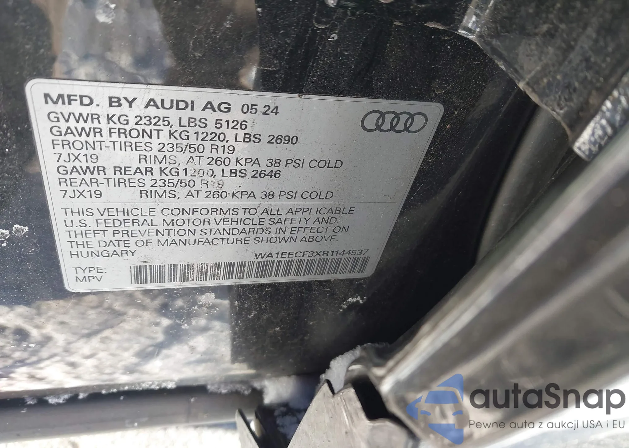 Samochód Audi Q3 2024 (VIN WA1EECF3XR1144537) nie był wcześniej licytowany. Dokumenty są czyste, przebieg odpowiada lub jest niższy niż średnia rynku. Sprzedaje go firma ubezpieczeniowa – polecamy zakup. Dostawa do portu zajmie ok. 6–8 tygodni.