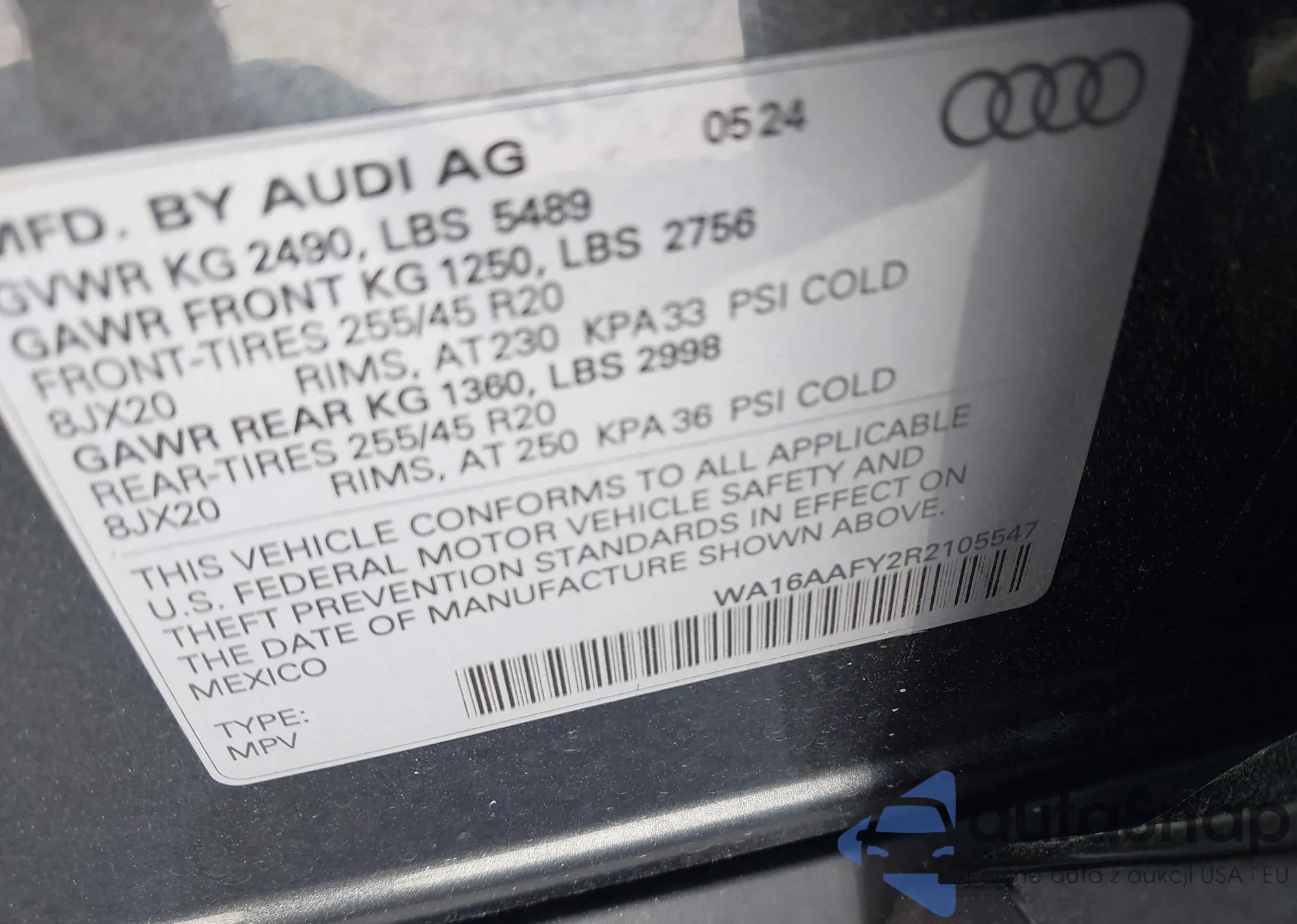 VIN: WA16AAFY2R2105547