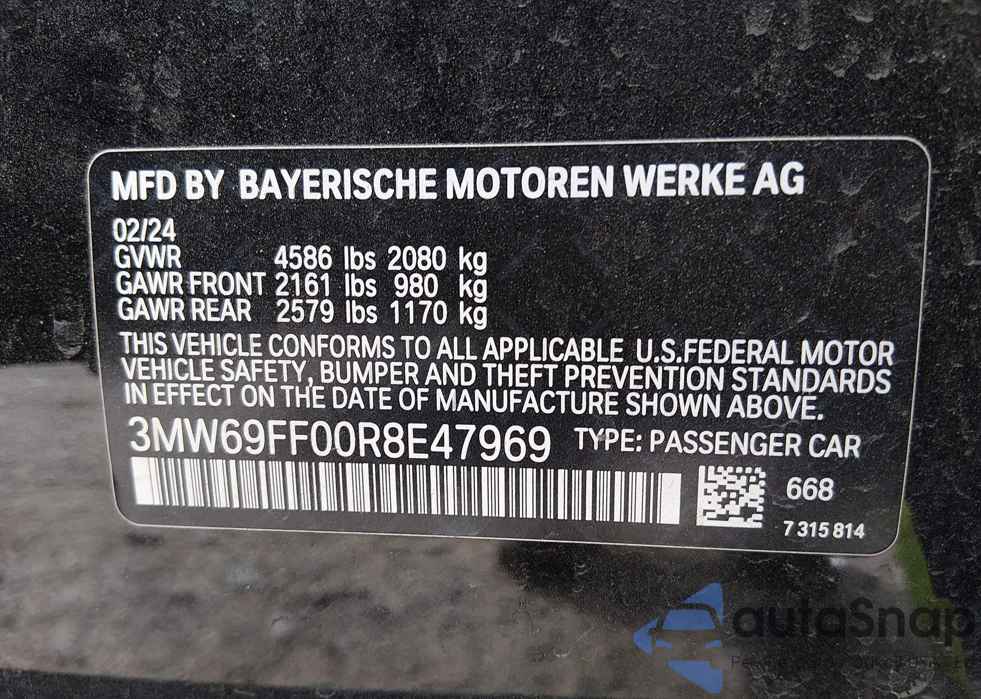 Samochód BMW 3er 2024 (VIN 3MW69FF00R8E47969) nie był wcześniej licytowany. Dokumenty są czyste, przebieg odpowiada lub jest niższy niż średnia rynku. Sprzedaje go firma ubezpieczeniowa – polecamy zakup. Dostawa do portu zajmie ok. 6–8 tygodni.