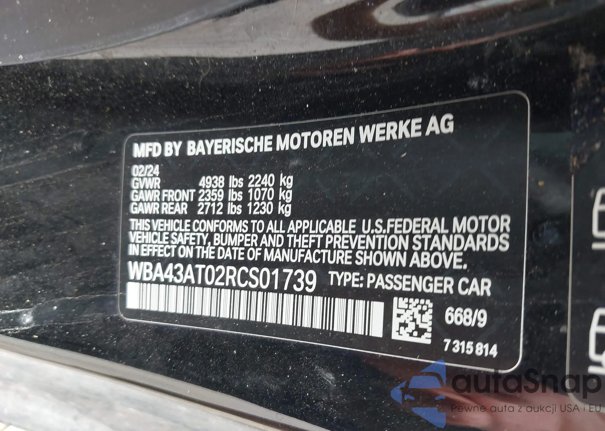 VIN: WBA43AT02RCS01739