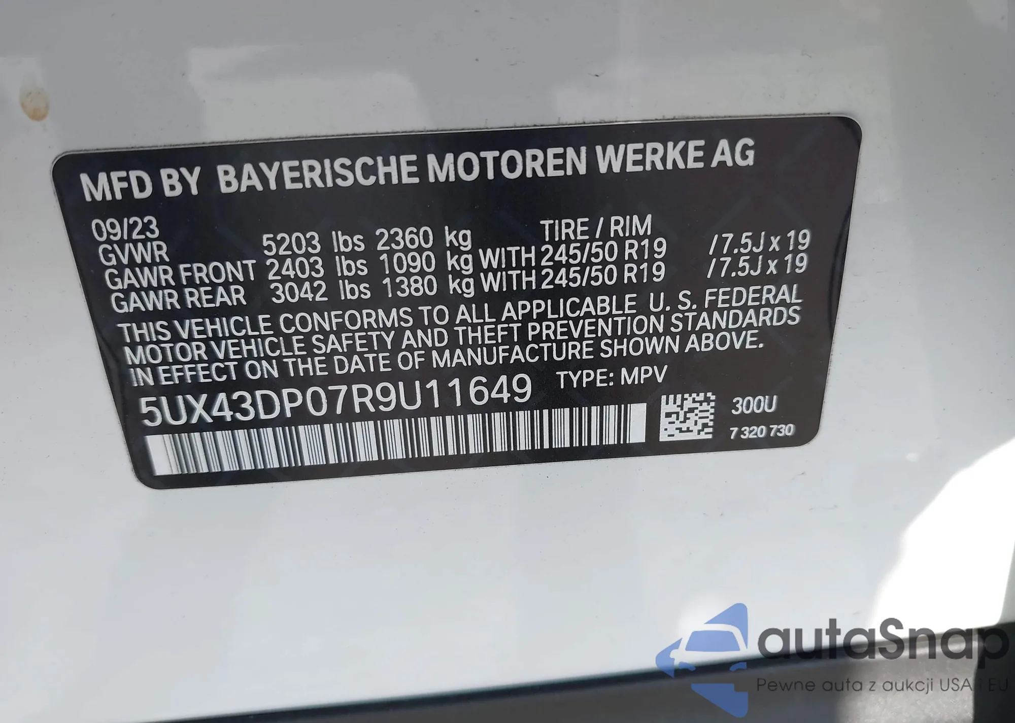 VIN: 5UX43DP07R9U11649