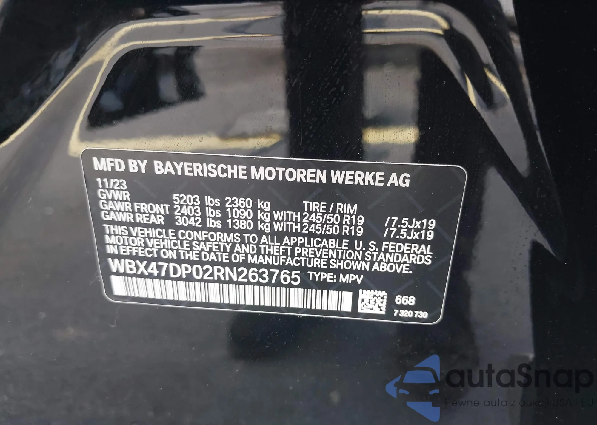 Samochód BMW X3 2024 (VIN WBX47DP02RN263765) nie był wcześniej licytowany. Dokumenty są czyste, przebieg odpowiada lub jest niższy niż średnia rynku. Sprzedaje go firma ubezpieczeniowa – polecamy zakup. Dostawa do portu zajmie ok. 6–8 tygodni.