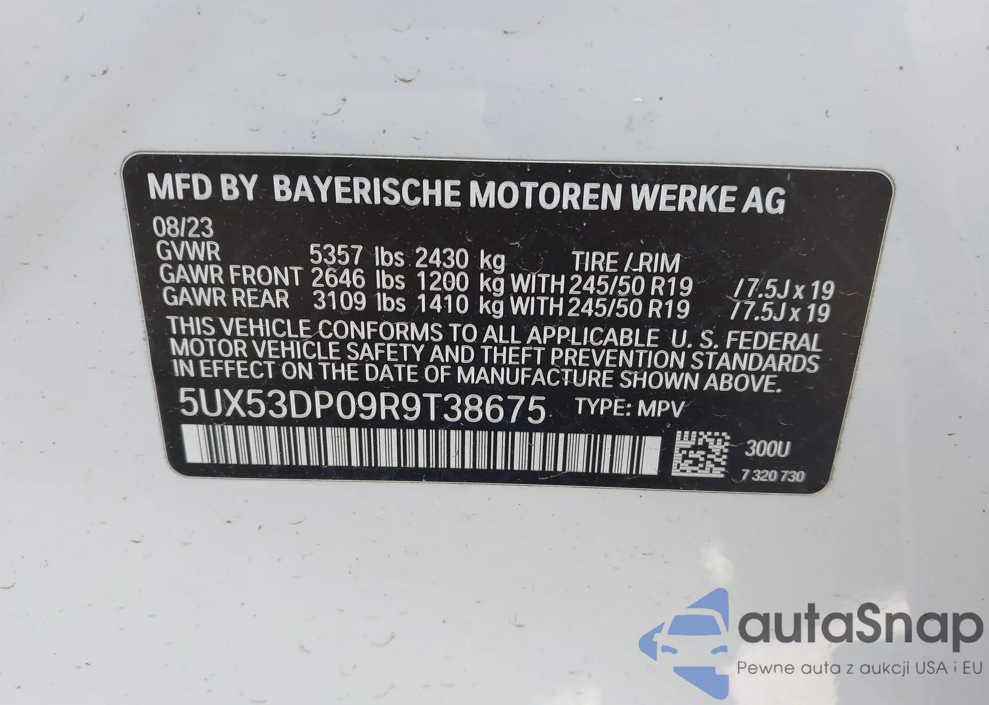 • VIN: 5UX53DP09R9T38675