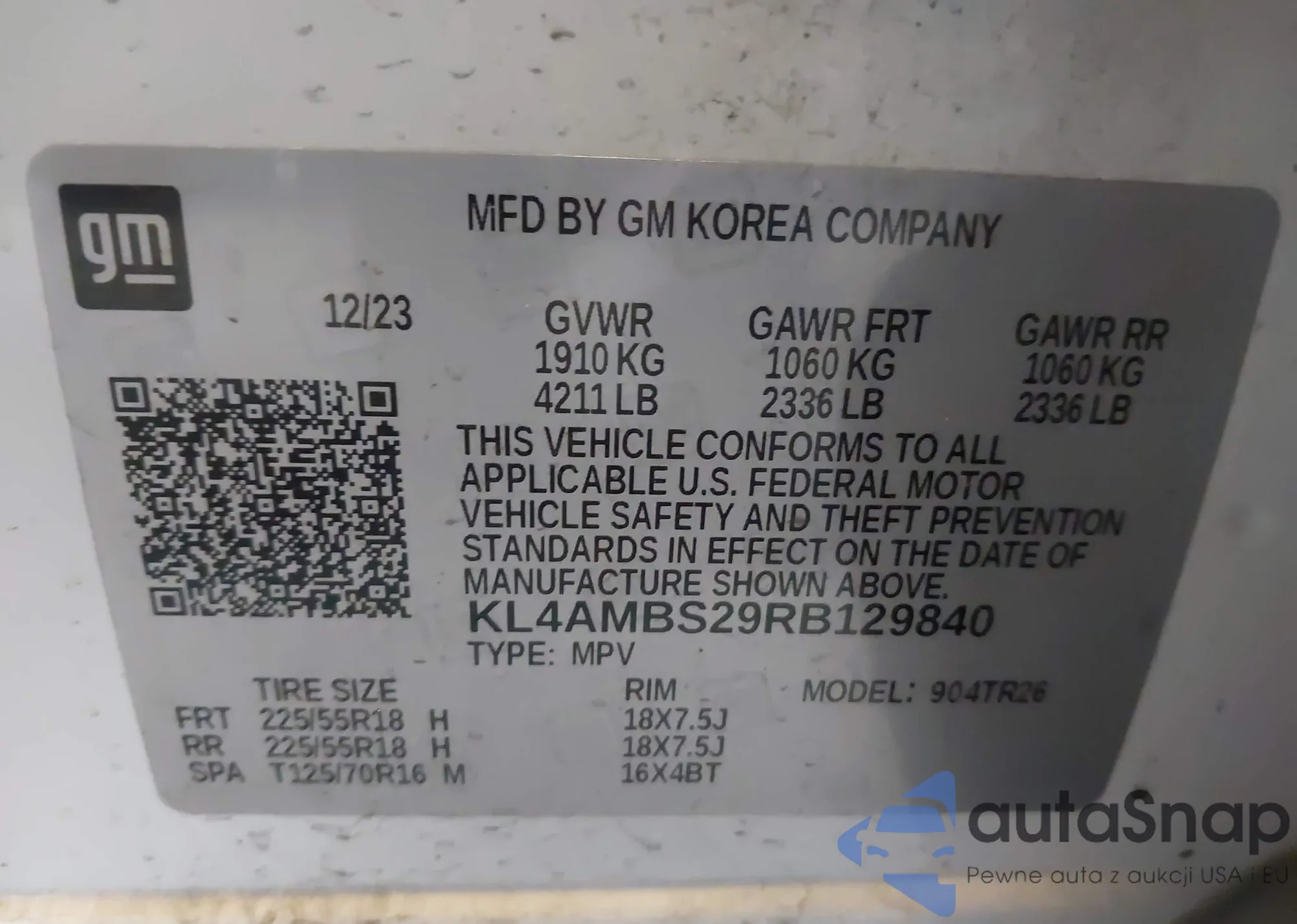 Samochód Buick Encore GX 2024 (VIN KL4AMBS29RB129840) ma dokumenty uniemożliwiające rejestrację. Mogą pojawić się trudności przy eksporcie i rejestracji. Skontaktuj się z ekspertami AutaSnap w celu znalezienia alternatywy.