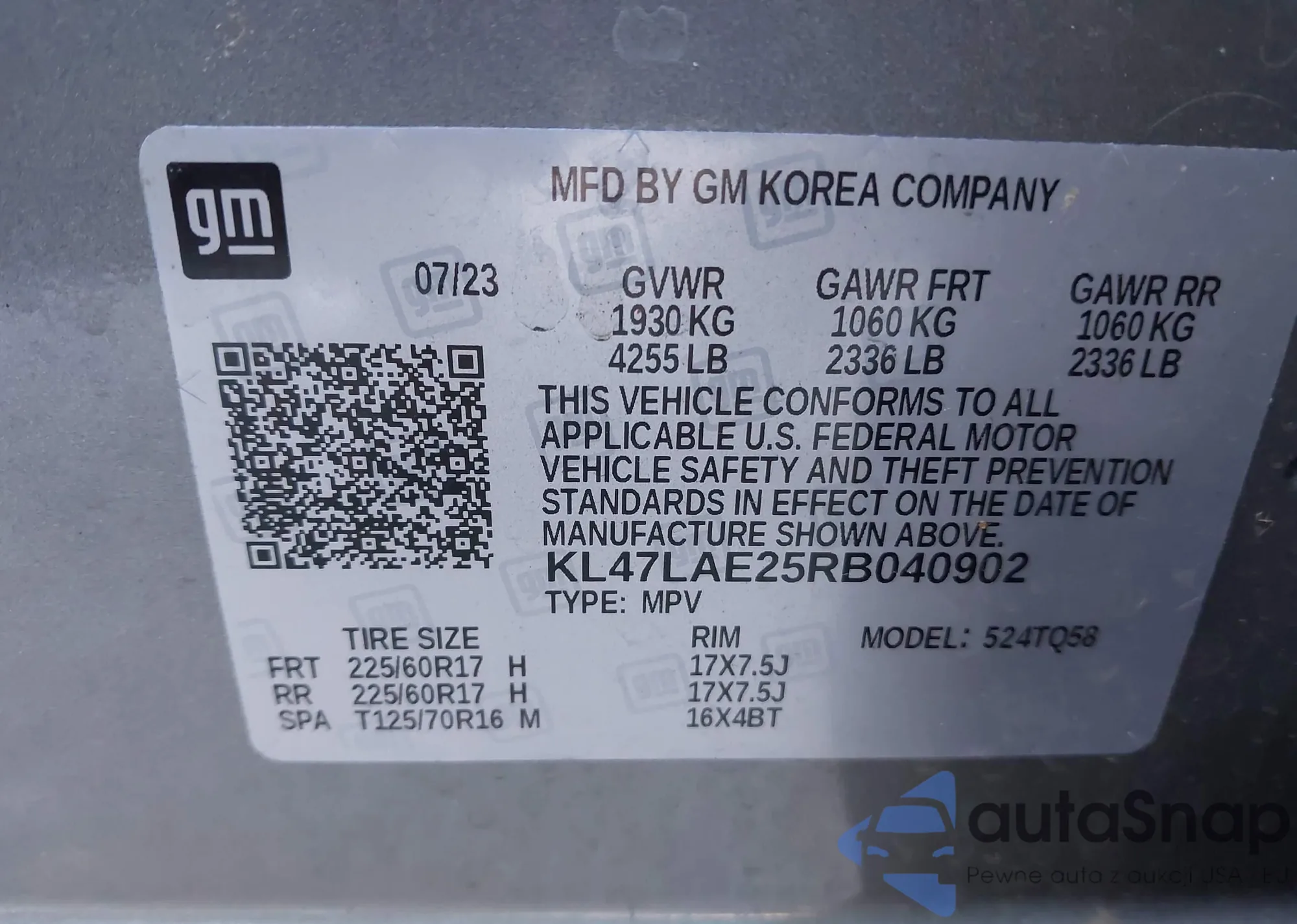 VIN: KL47LAE25RB040902