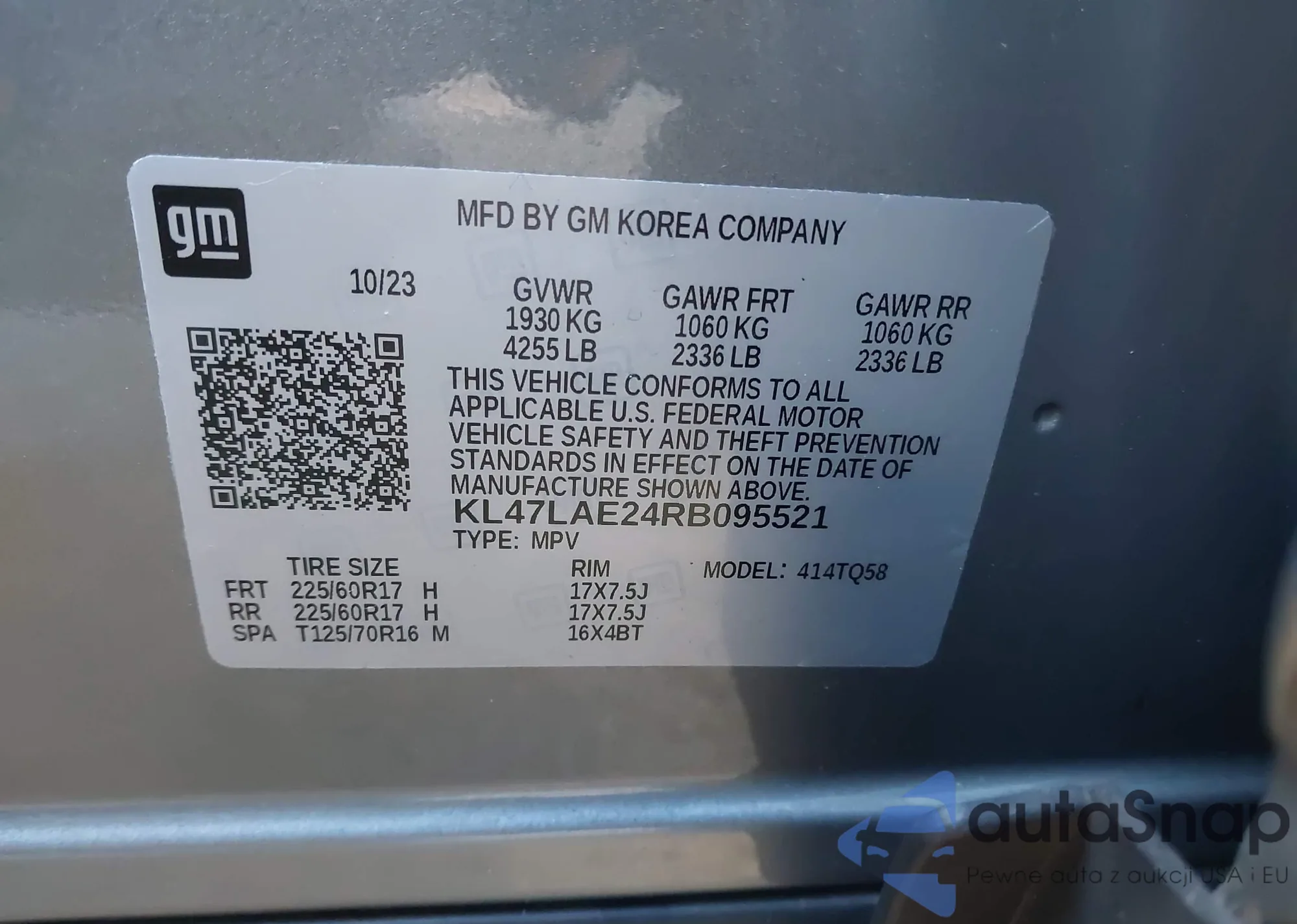 • VIN: KL47LAE24RB095521