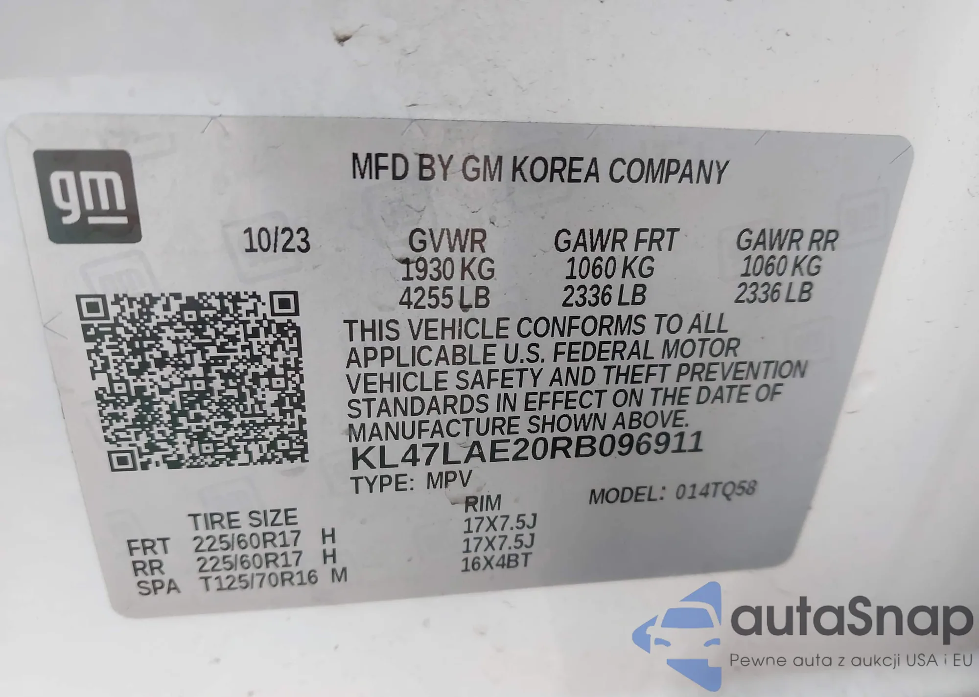 • VIN: KL47LAE20RB096911