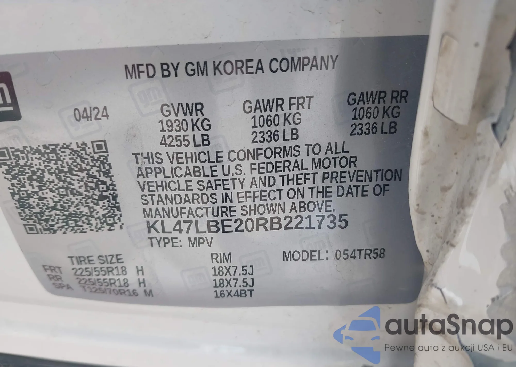 VIN: KL47LBE20RB221735