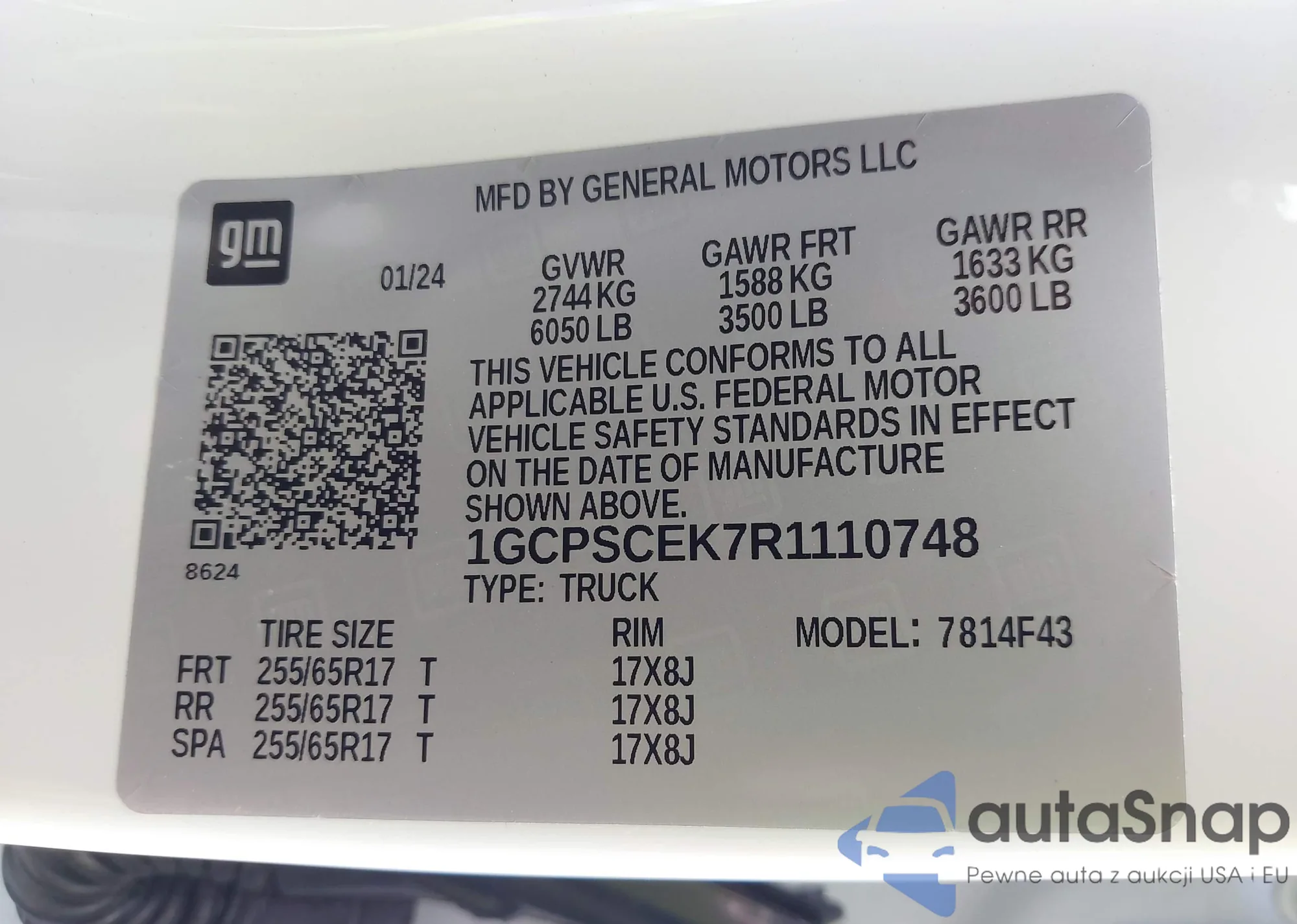 • VIN: 1GCPSCEK7R1110748
