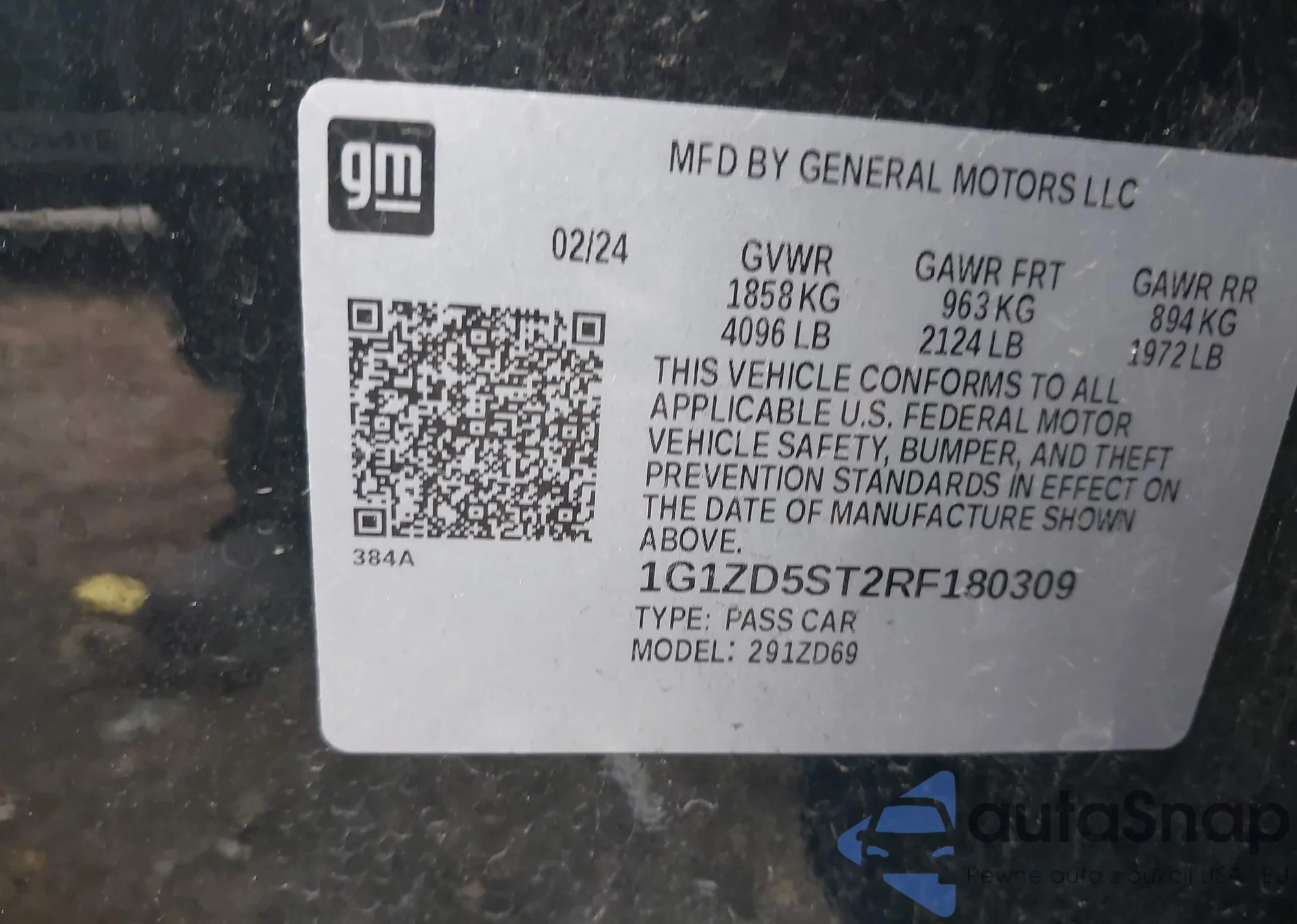VIN: 1G1ZD5ST2RF180309