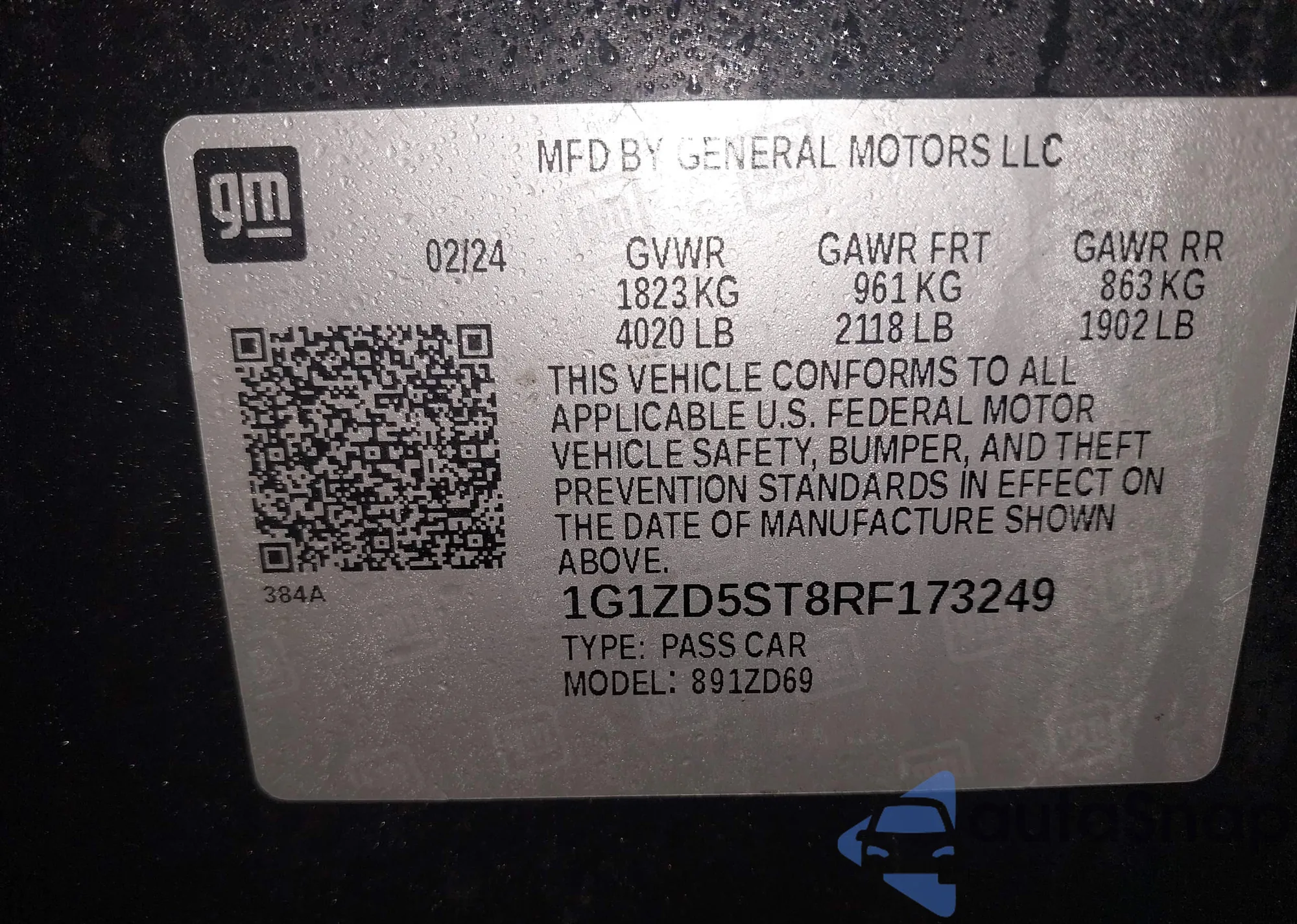 VIN: 1G1ZD5ST8RF173249