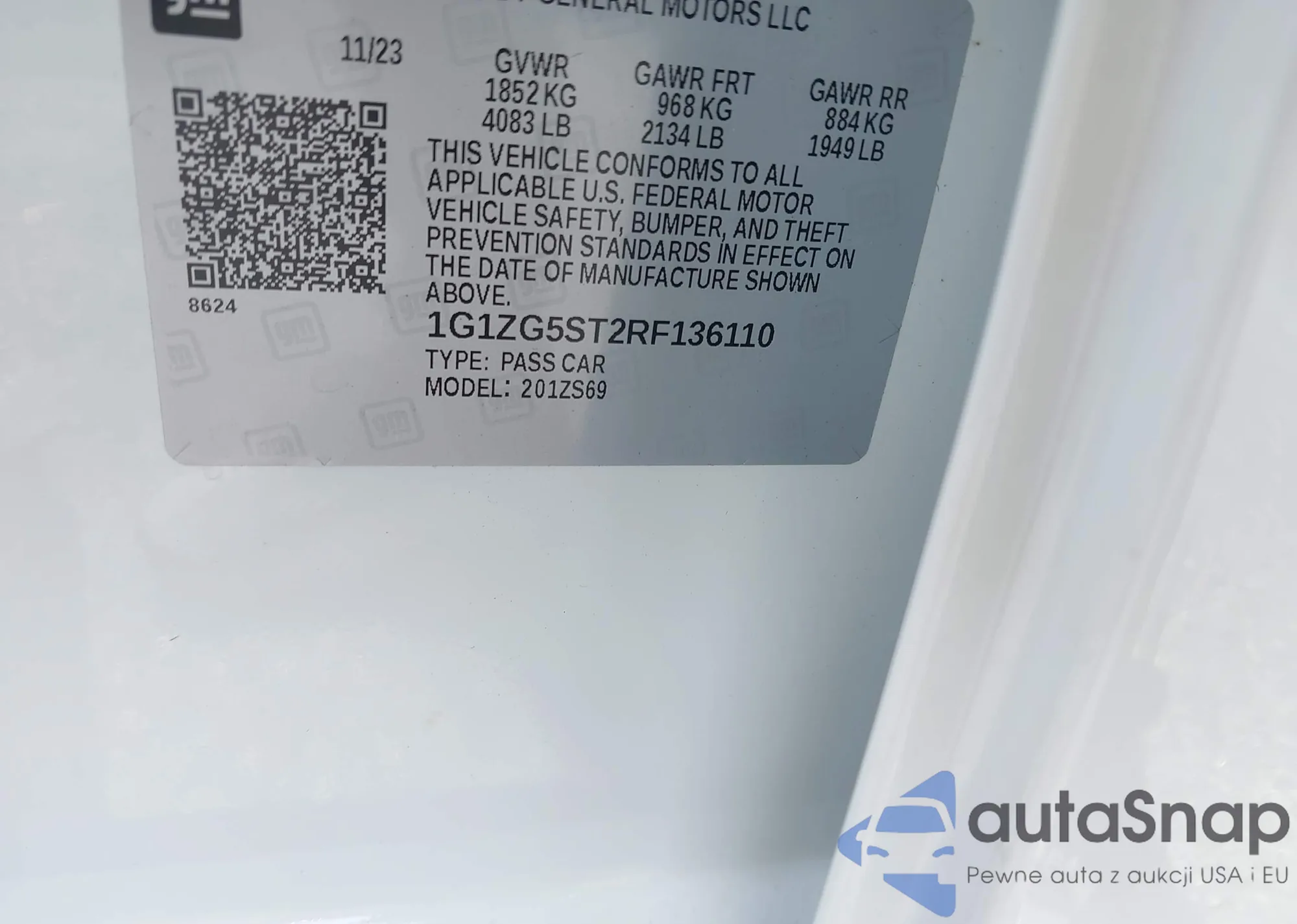 VIN: 1G1ZG5ST2RF136110