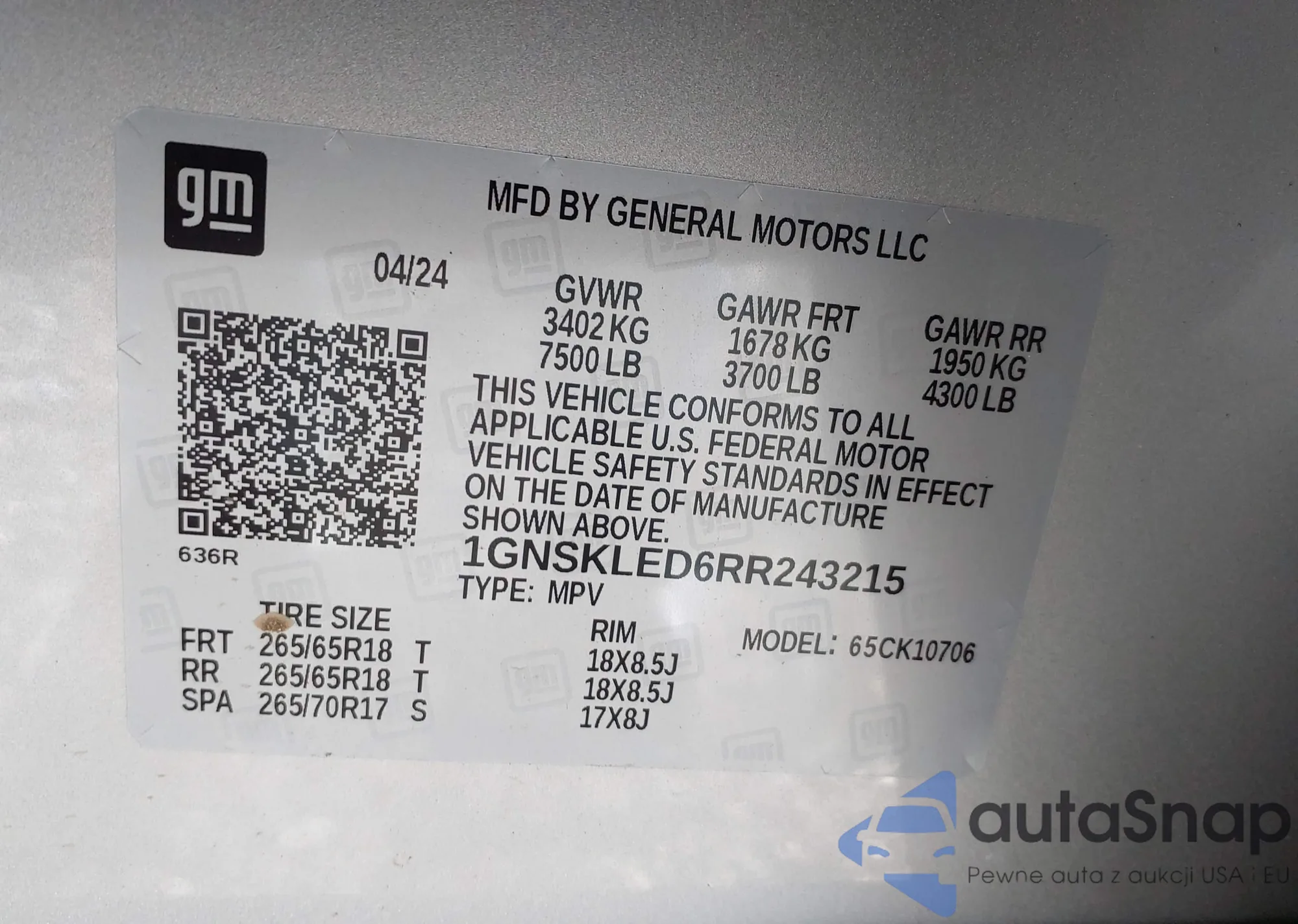 VIN: 1GNSKLED6RR243215