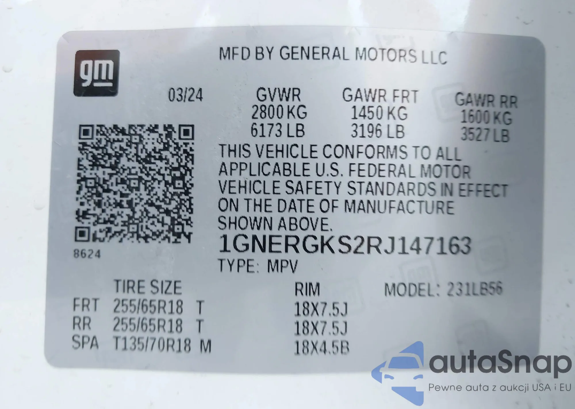 VIN: 1GNERGKS2RJ147163
