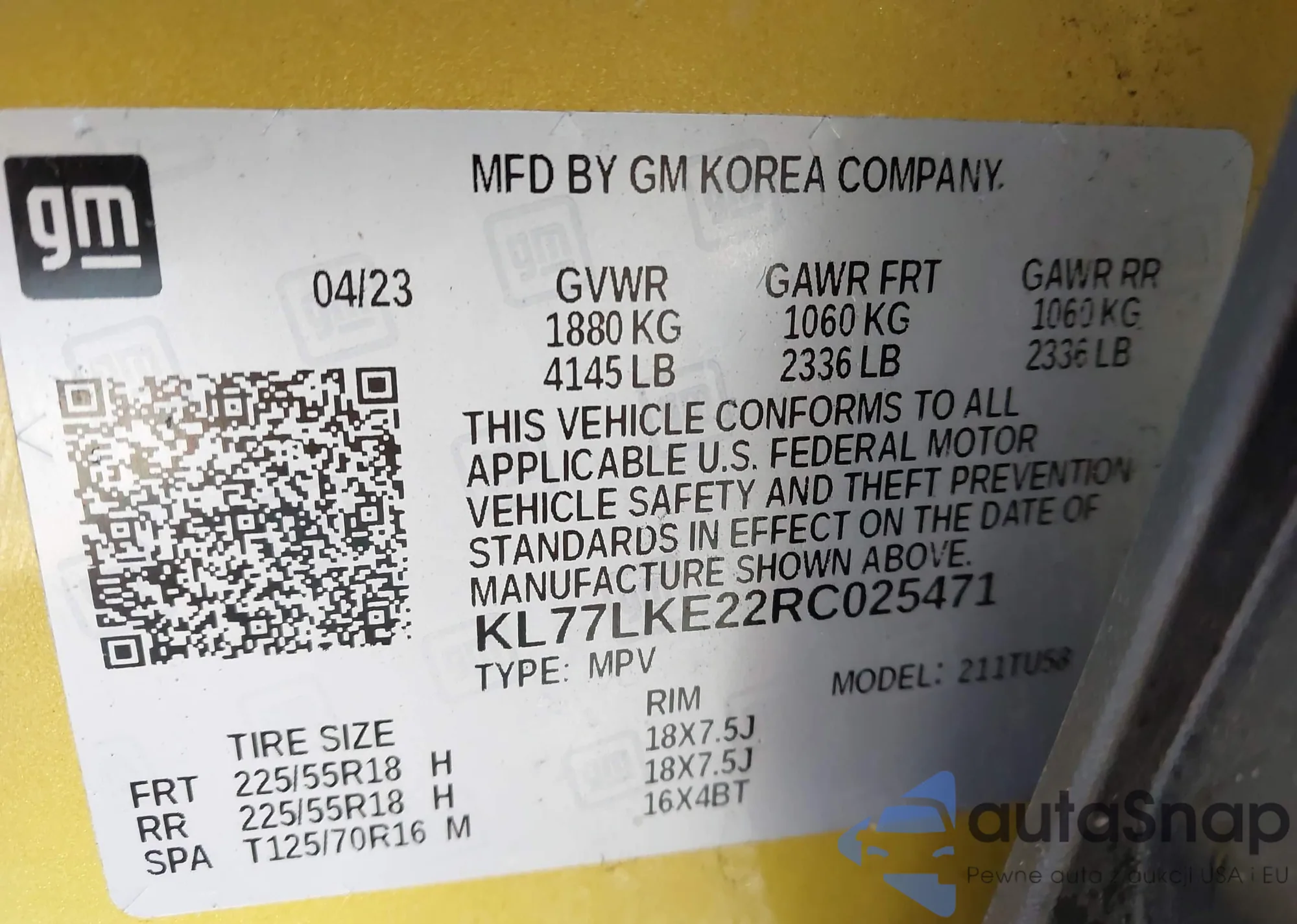 VIN: KL77LKE22RC025471