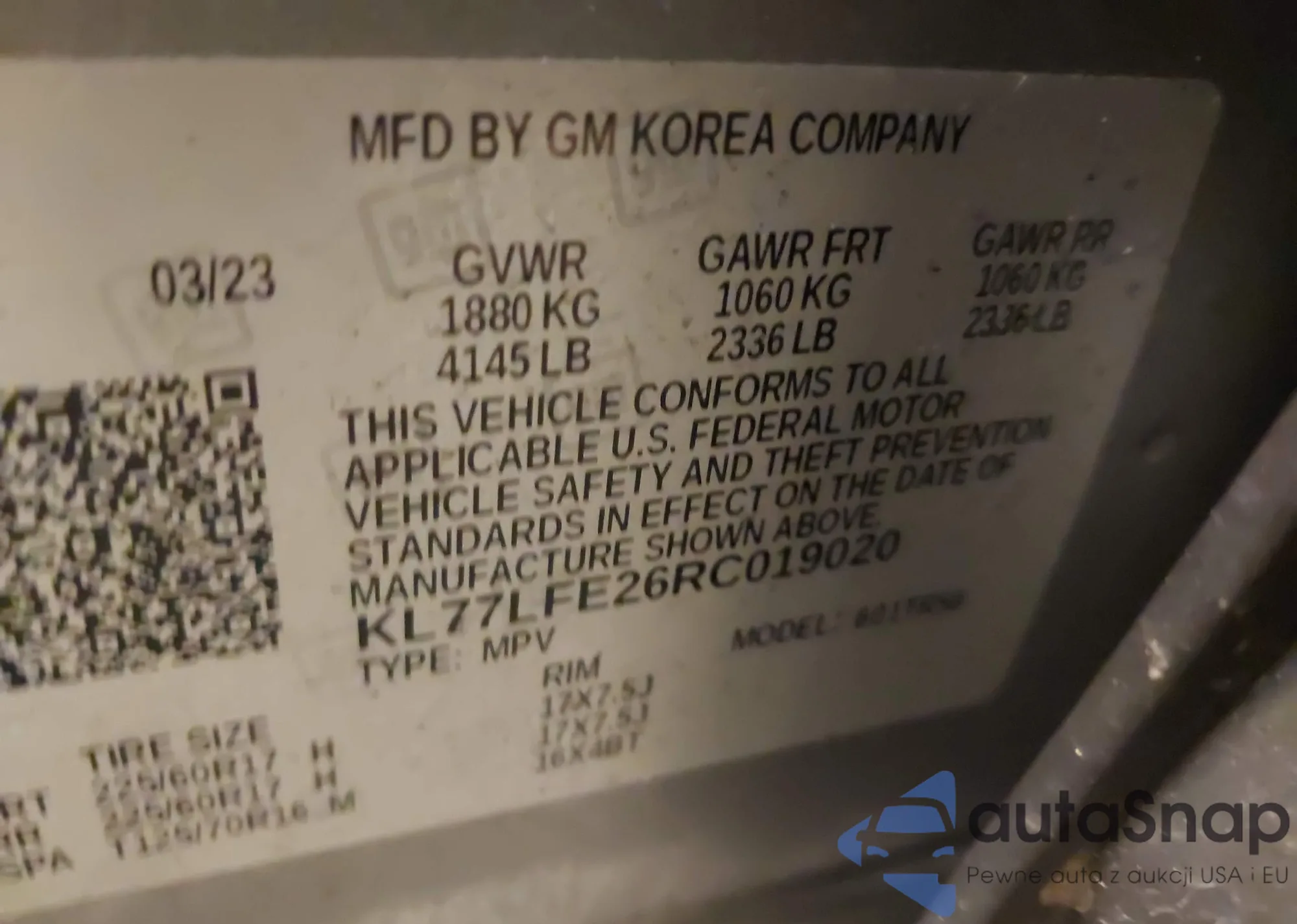 Samochód Chevrolet Trax 2024 (VIN KL77LFE26RC019020) nie był wcześniej licytowany. Dokumenty są czyste, przebieg odpowiada lub jest niższy niż średnia rynku. Sprzedaje go firma ubezpieczeniowa – polecamy zakup. Dostawa do portu zajmie ok. 6–8 tygodni.