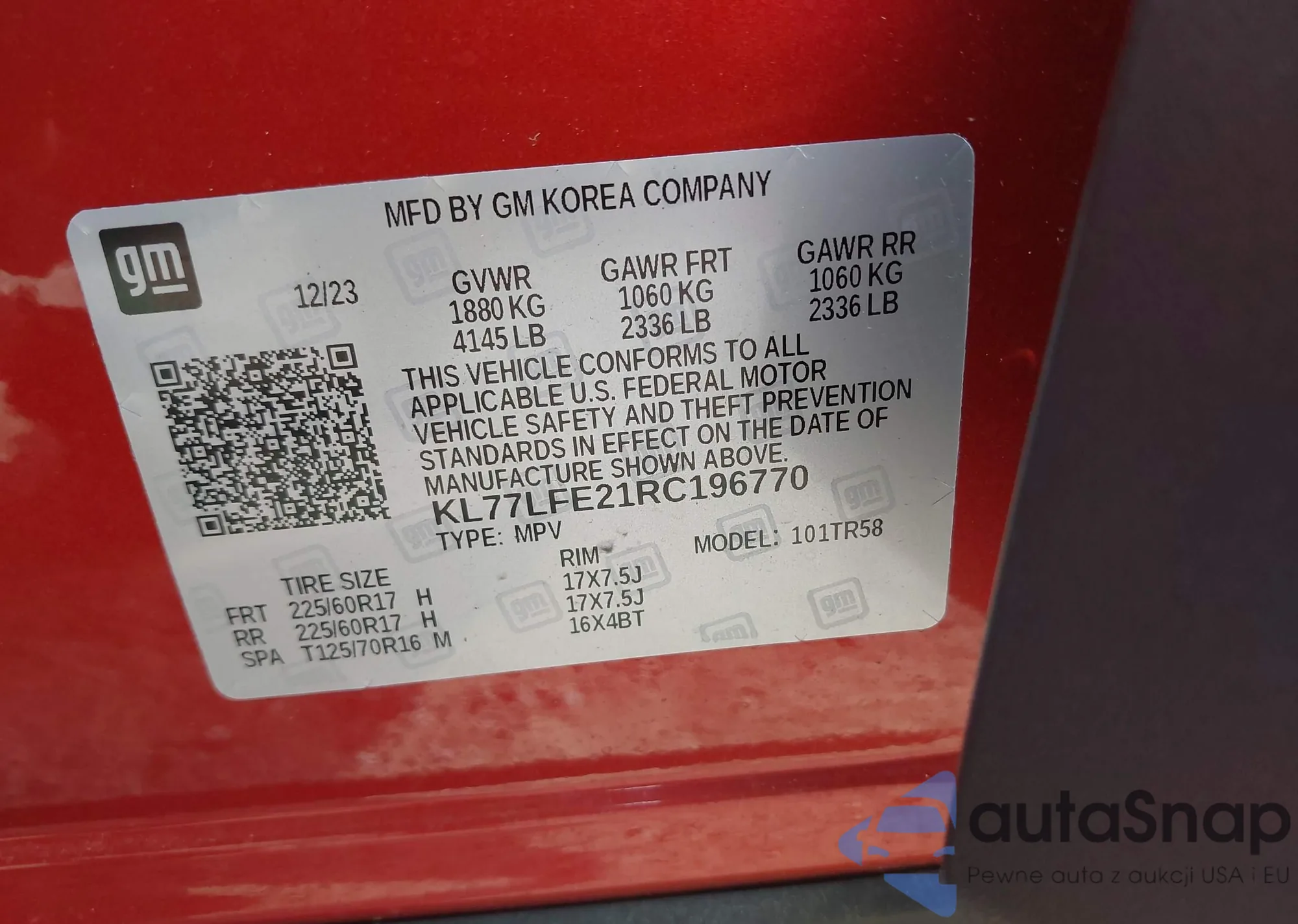 VIN: KL77LFE21RC196770