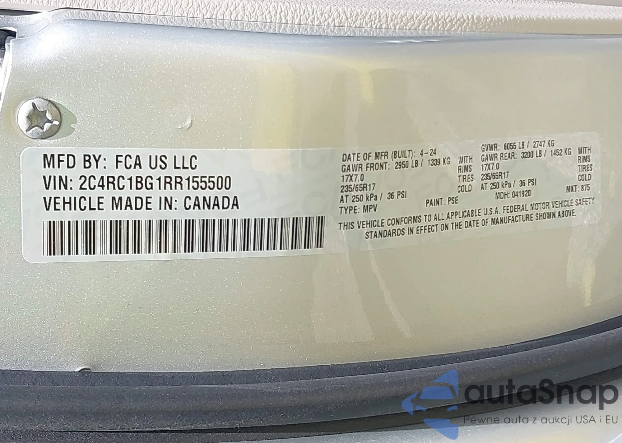 VIN: 2C4RC1BG1RR155500