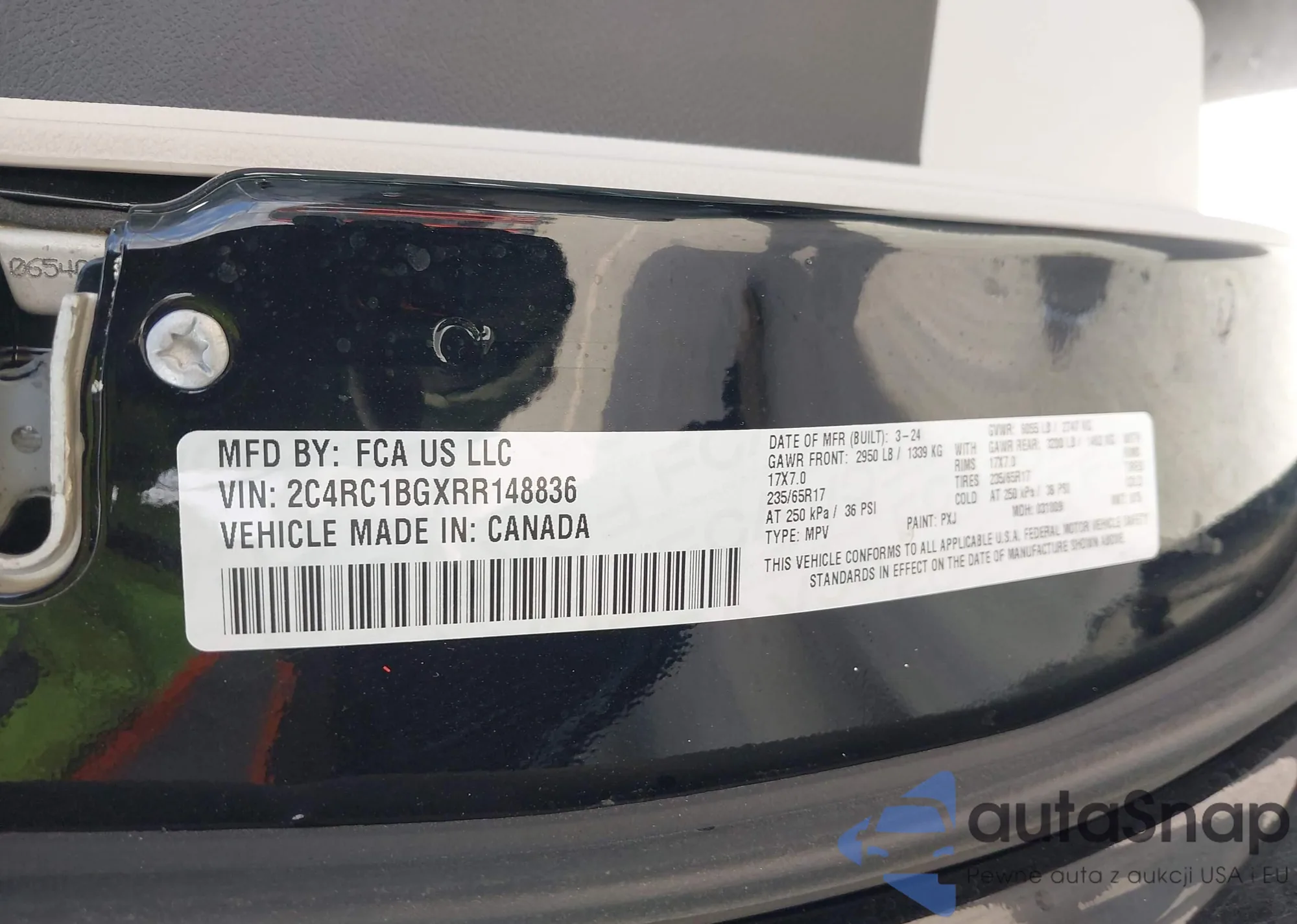 Samochód Chrysler Pacifica 2024 (VIN 2C4RC1BGXRR148836) sprzedaje go niezweryfikowany sprzedawca. Zalecamy raport Carfax i potwierdzenie możliwości rejestracji pojazdu przed zakupem.