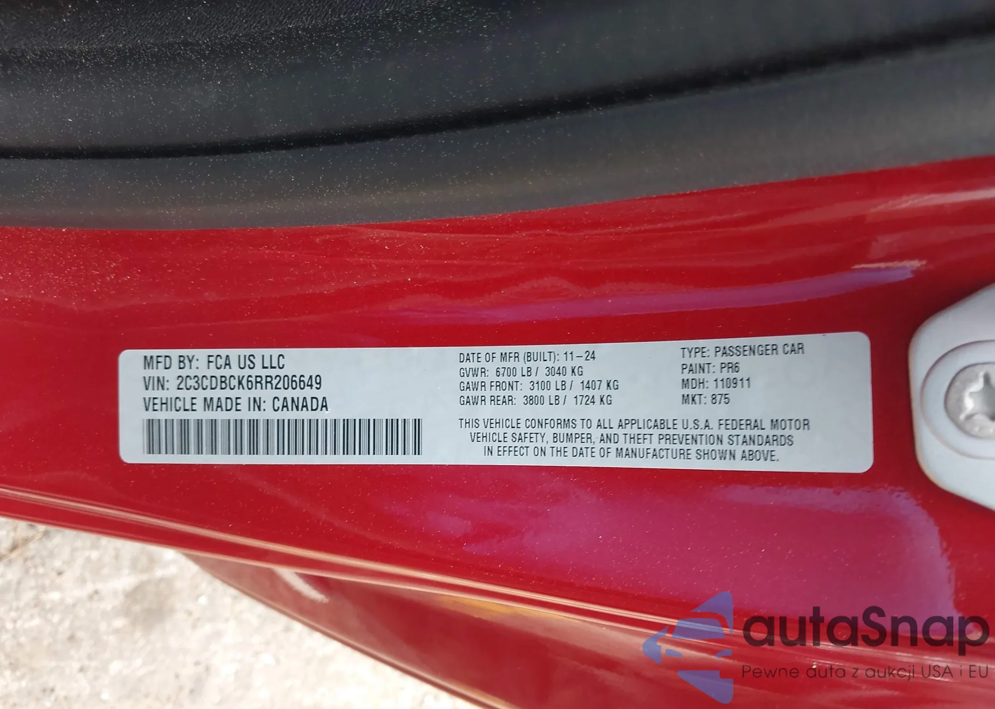 Samochód Dodge Charger Daytona 2024 (VIN 2C3CDBCK6RR206649) nie był wcześniej licytowany. Dokumenty są czyste, przebieg odpowiada lub jest niższy niż średnia rynku. Sprzedaje go firma ubezpieczeniowa – polecamy zakup. Dostawa do portu zajmie ok. 6–8 tygodni.