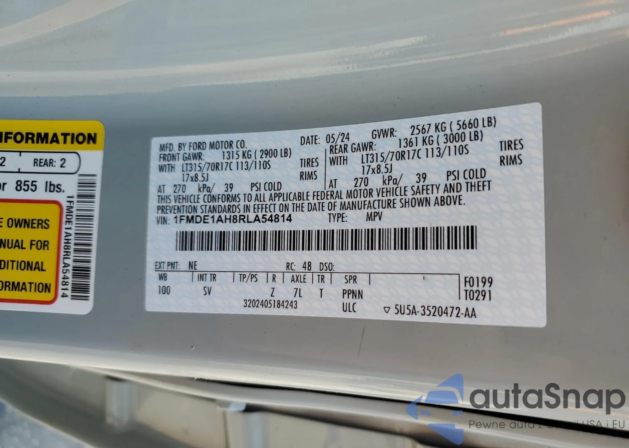 VIN: 1FMDE1AH8RLA54814