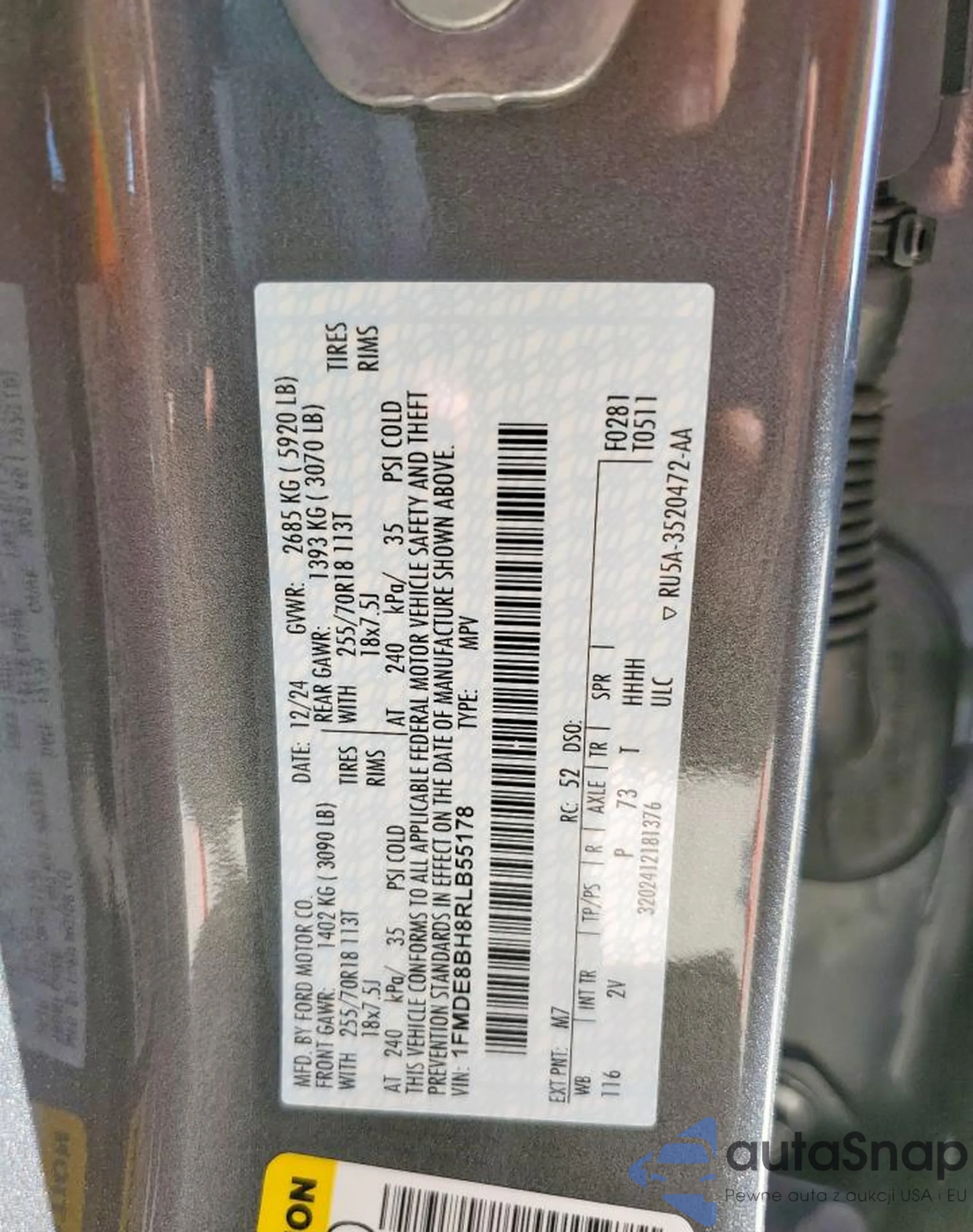 Samochód Ford Bronco 2024 (VIN 1FMDE8BH8RLB55178) był już licytowany 1 razy i/lub sprzedaje go niezweryfikowany sprzedawca. Zalecamy raport Carfax i potwierdzenie możliwości rejestracji pojazdu przed zakupem.