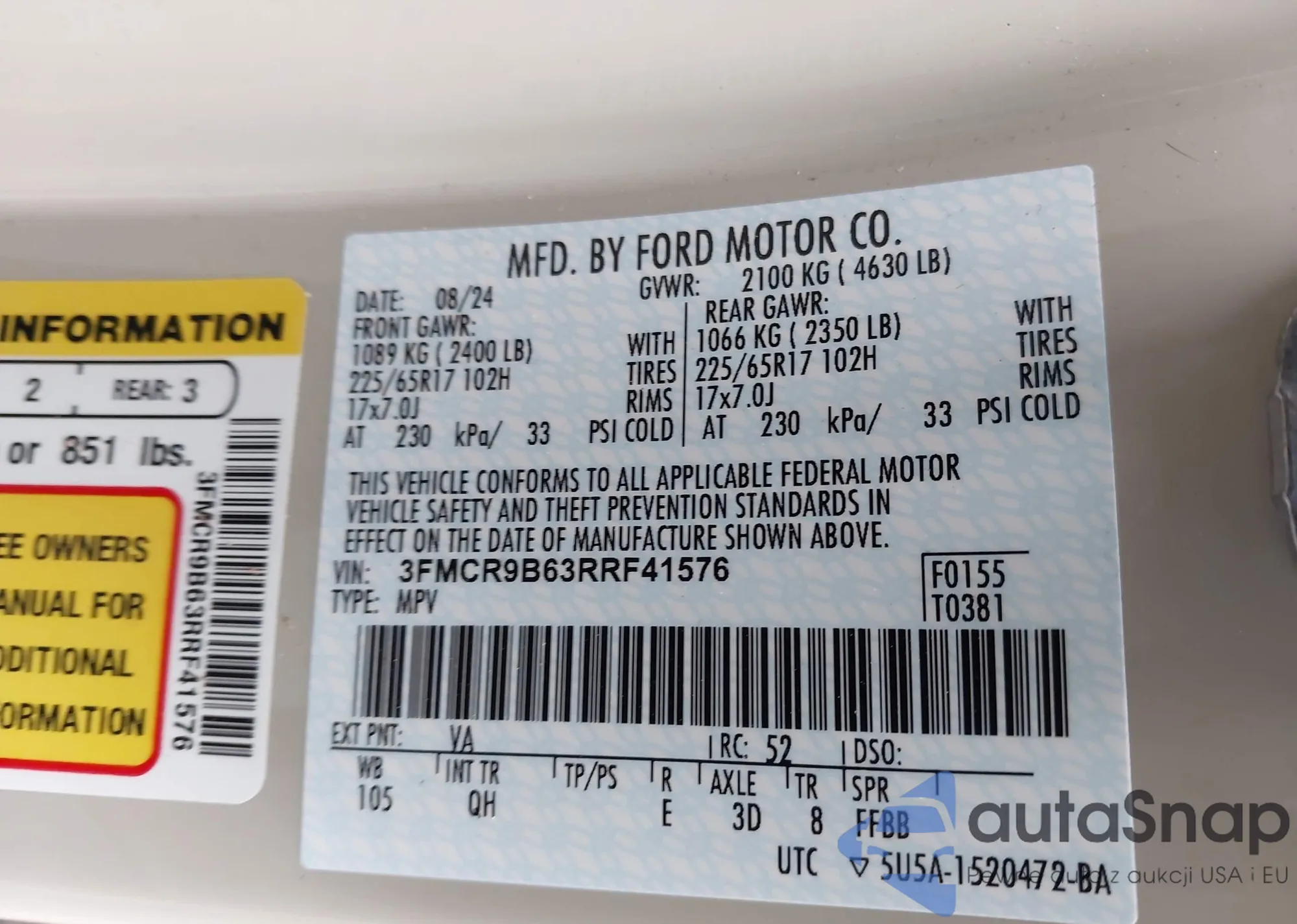 • VIN: 3FMCR9B63RRF41576