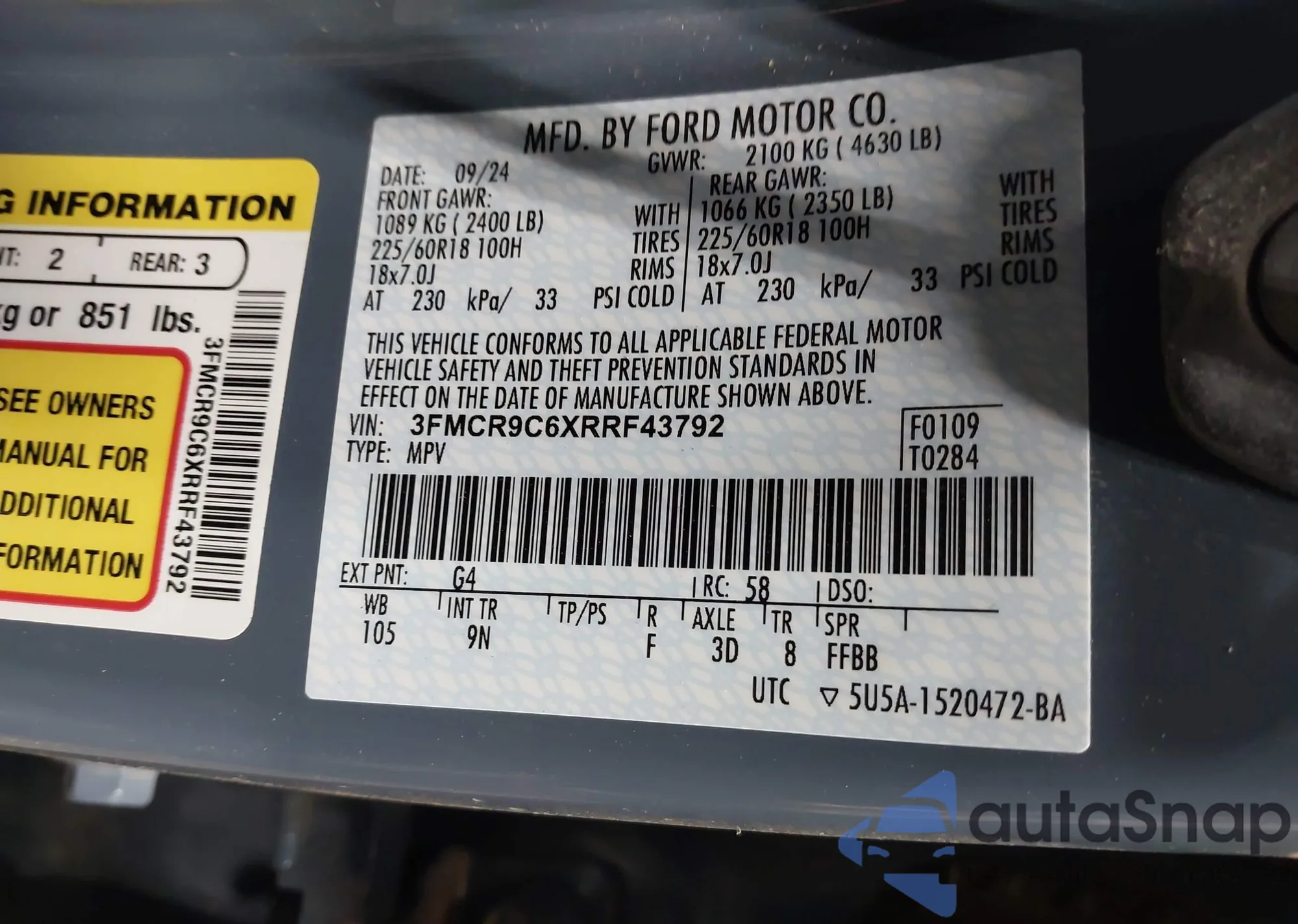 Samochód Ford Bronco Sport 2024 (VIN 3FMCR9C6XRRF43792) nie był wcześniej licytowany. Dokumenty są czyste, przebieg odpowiada lub jest niższy niż średnia rynku. Sprzedaje go firma ubezpieczeniowa – polecamy zakup. Dostawa do portu zajmie ok. 6–8 tygodni.