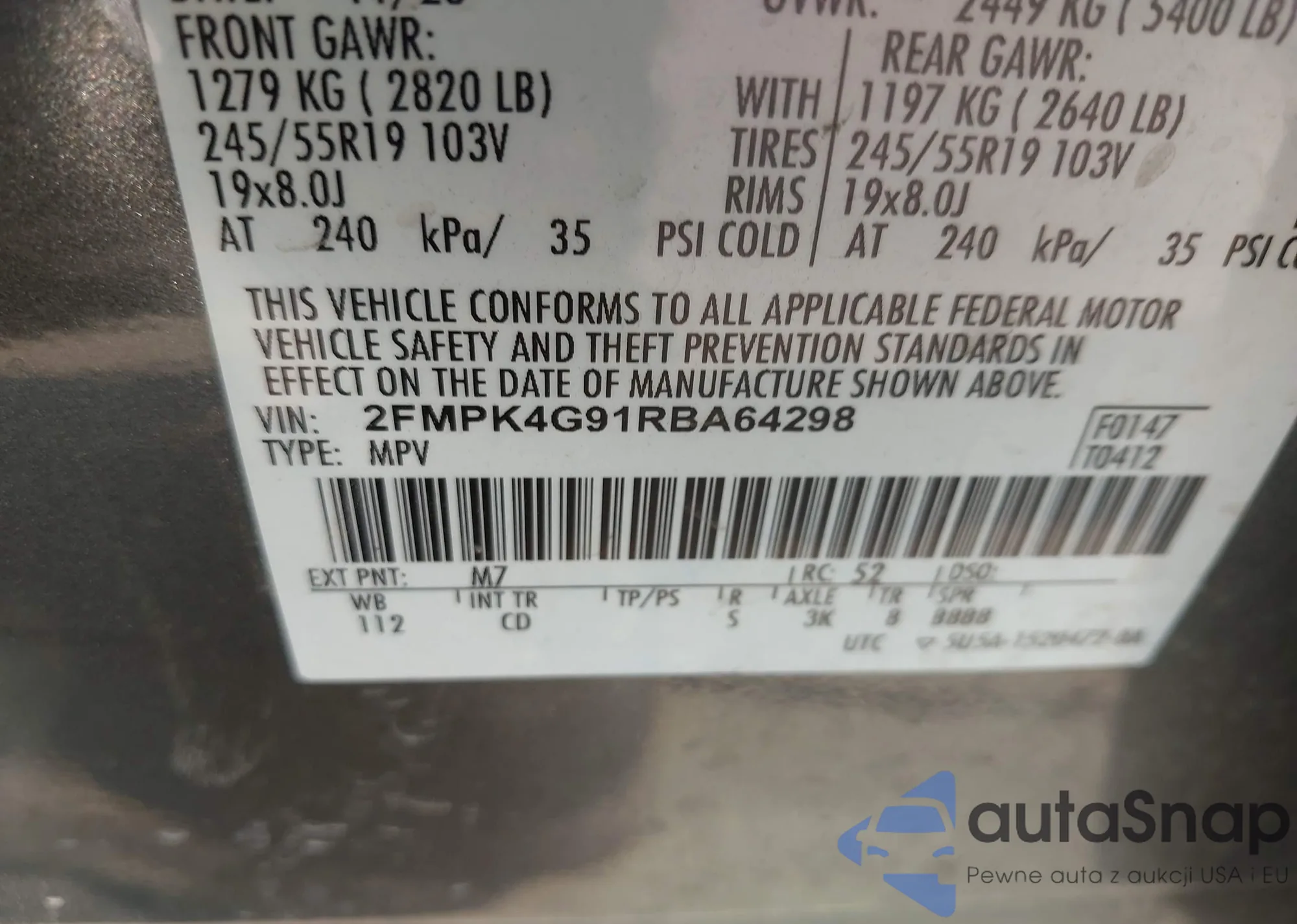 VIN: 2FMPK4G91RBA64298
