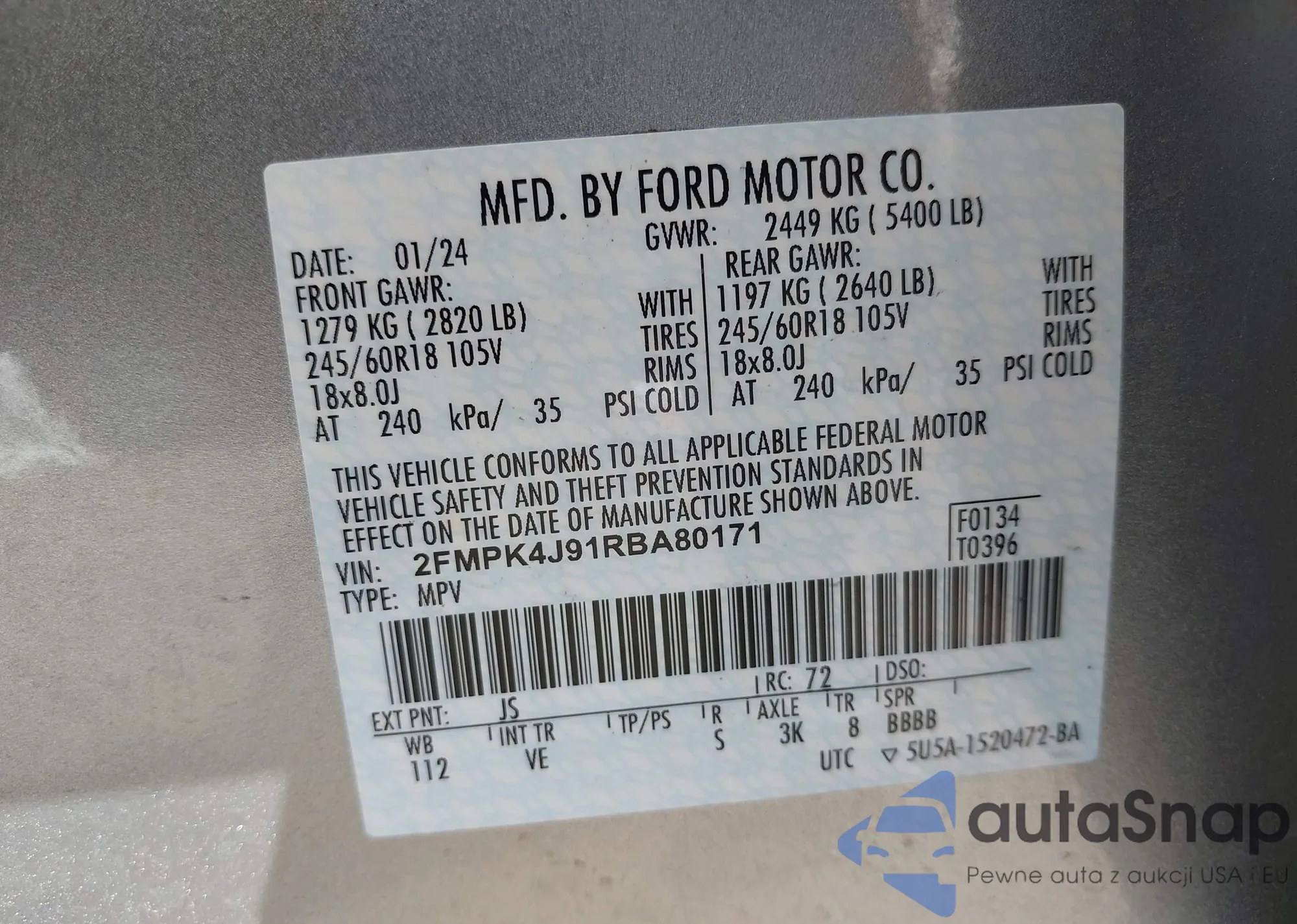 VIN: 2FMPK4J91RBA80171