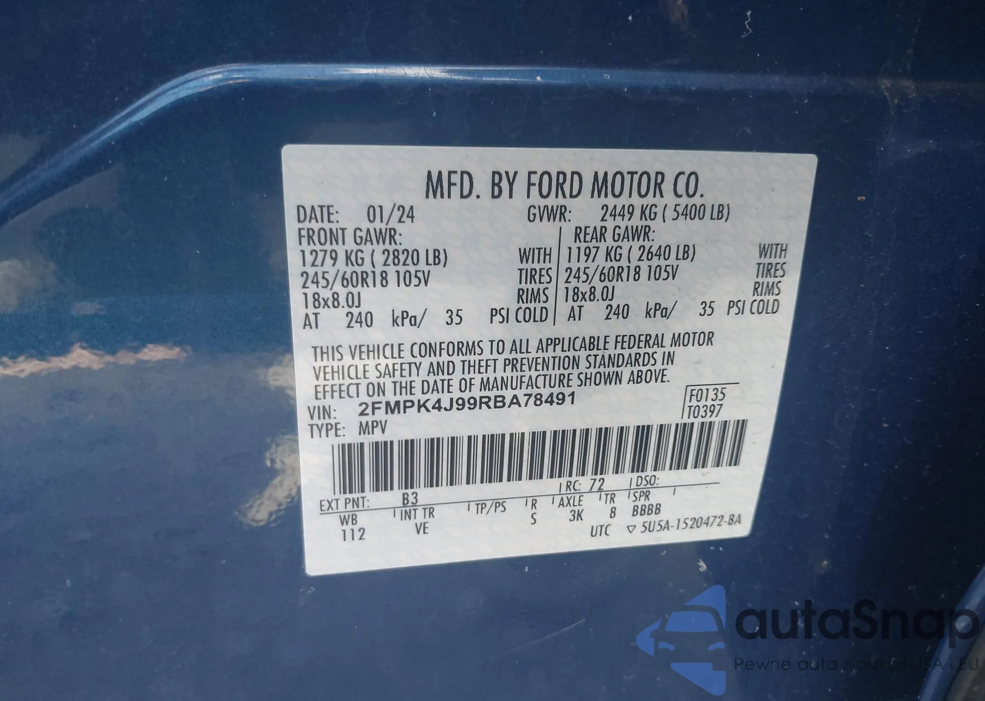 VIN: 2FMPK4J99RBA78491