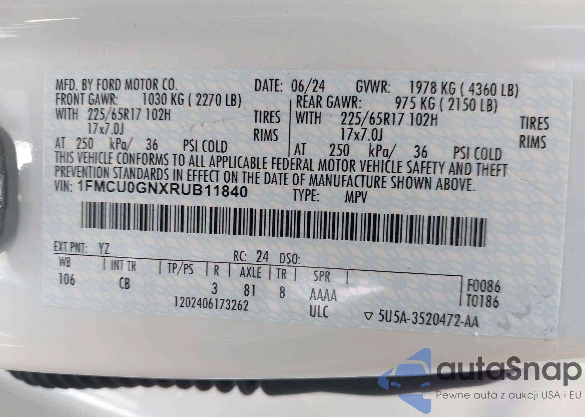 VIN: 1FMCU0GNXRUB11840
