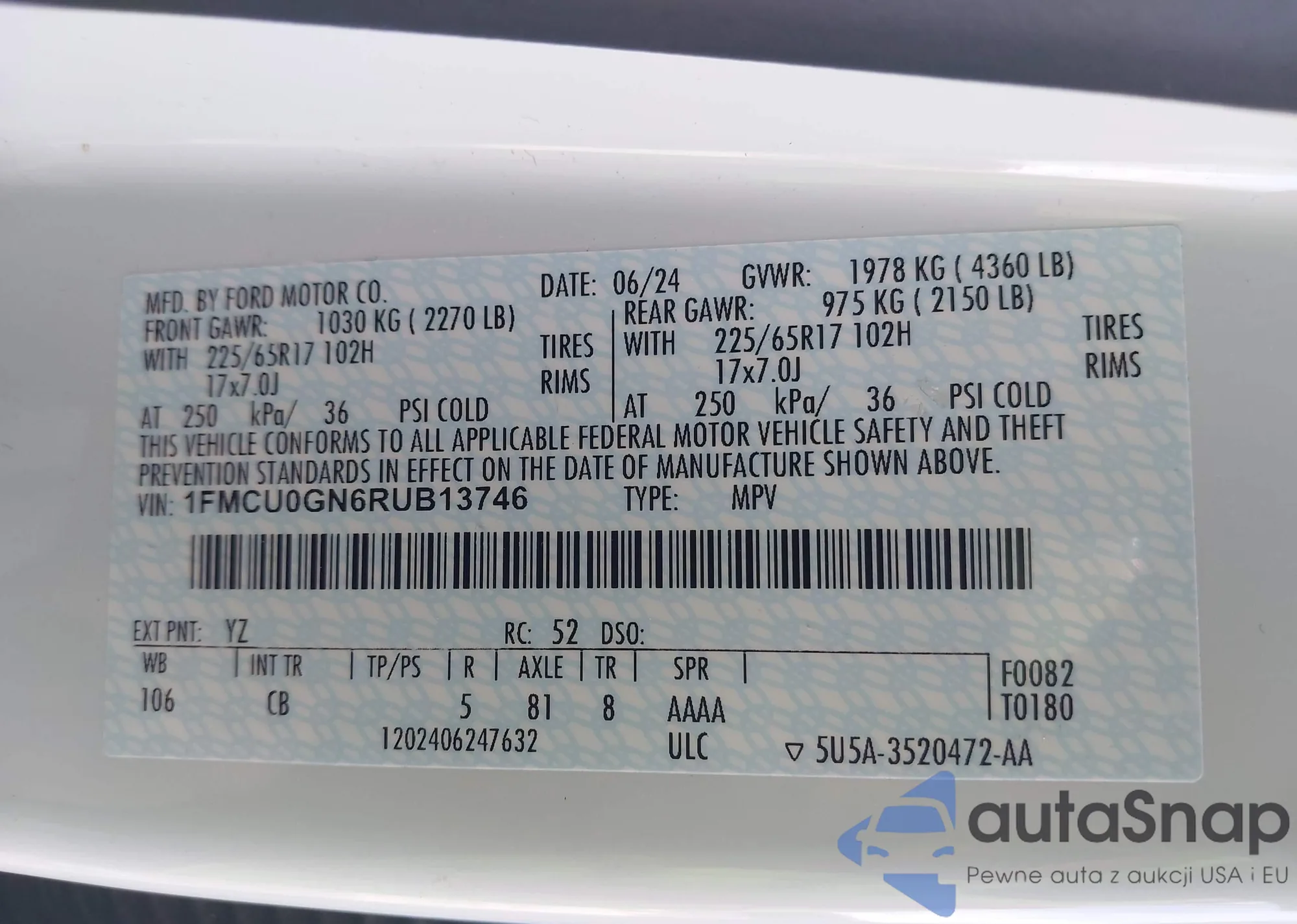 • VIN: 1FMCU0GN6RUB13746