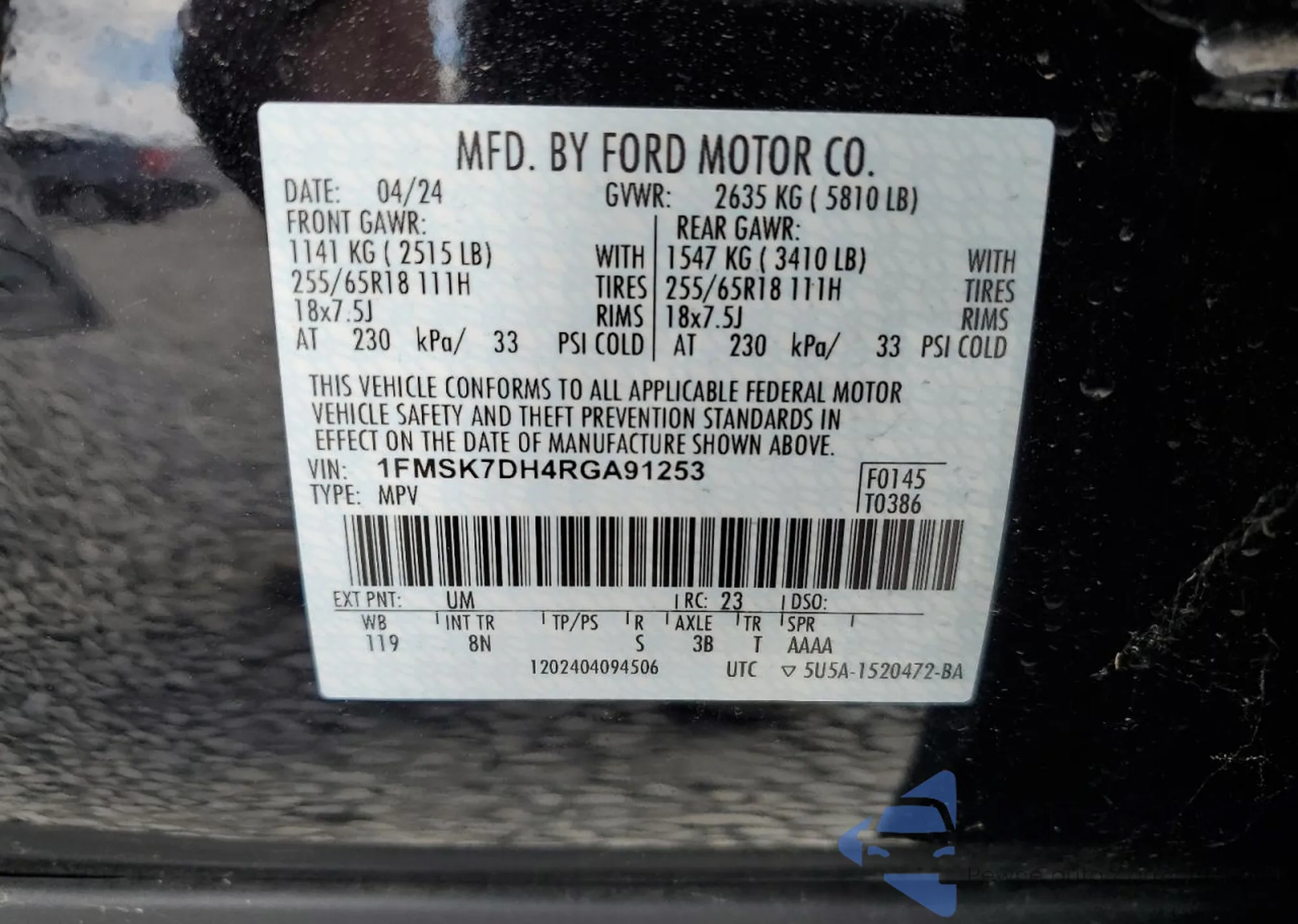 VIN: 1FMSK7DH4RGA91253