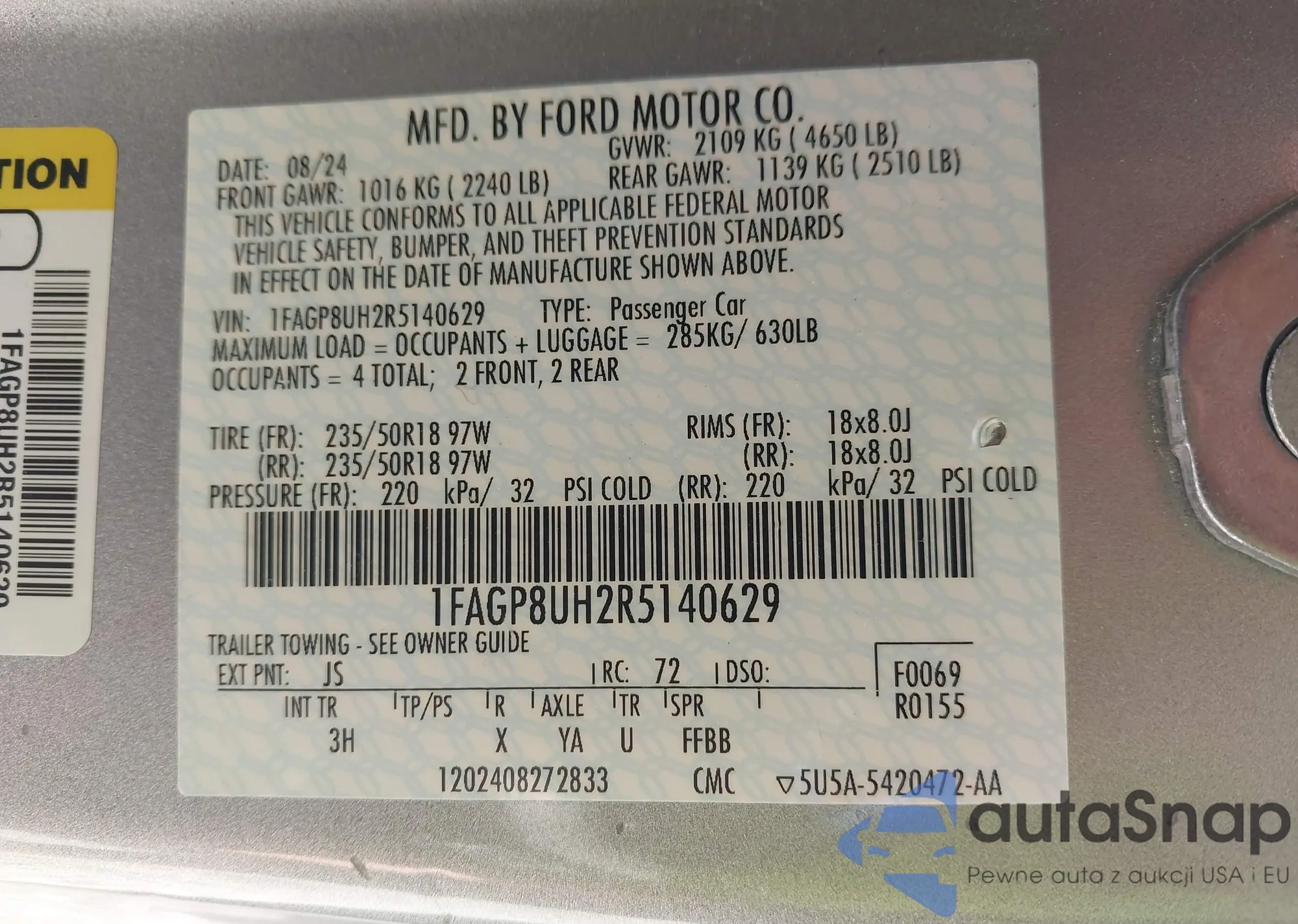 VIN: 1FAGP8UH2R5140629