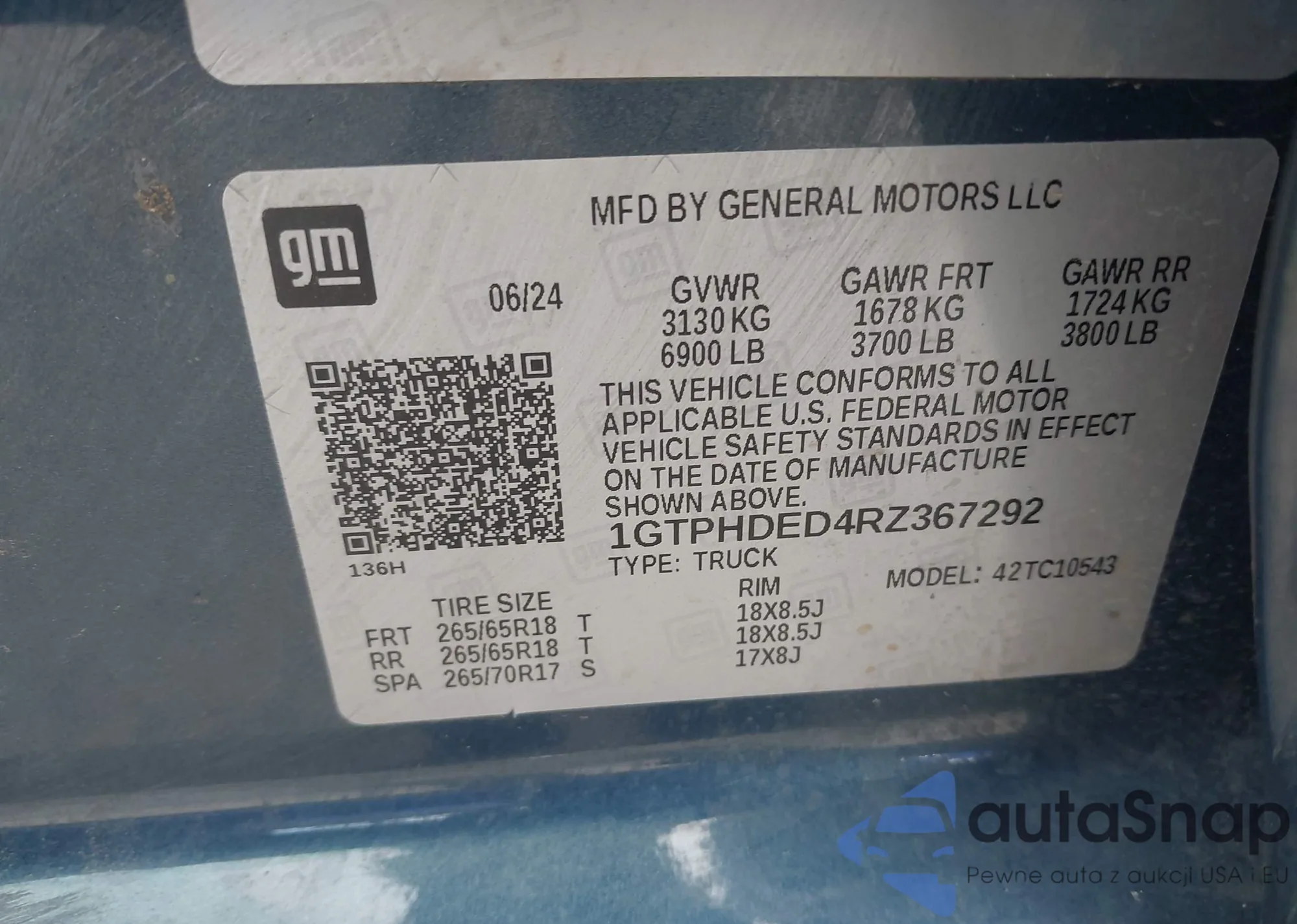 Samochód GMC Sierra 2024 (VIN 1GTPHDED4RZ367292) sprzedaje go niezweryfikowany sprzedawca. Zalecamy raport Carfax i potwierdzenie możliwości rejestracji pojazdu przed zakupem.