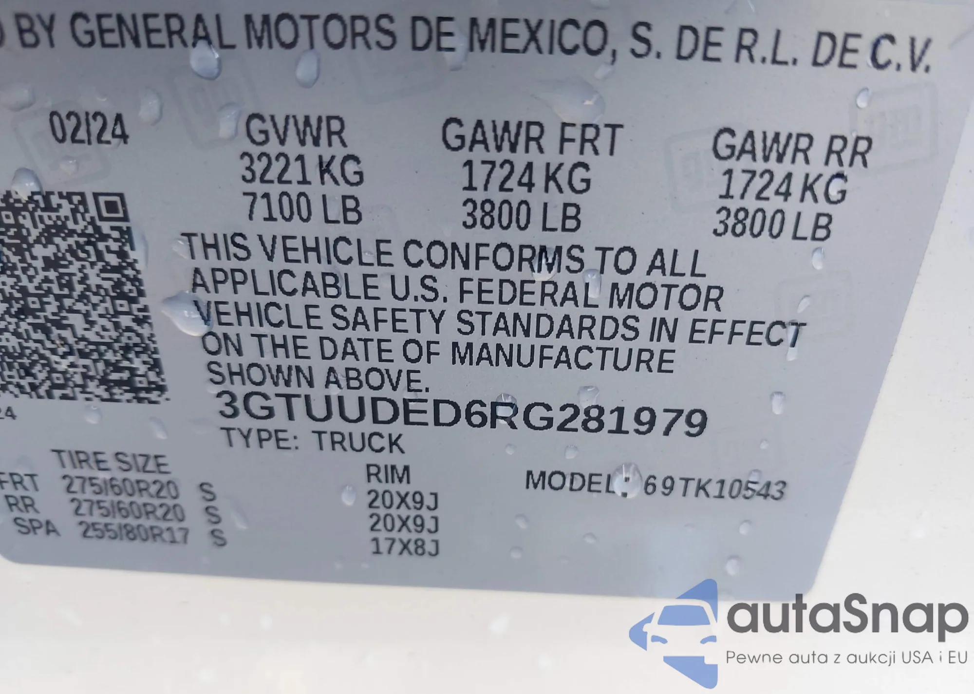 VIN: 3GTUUDED6RG281979