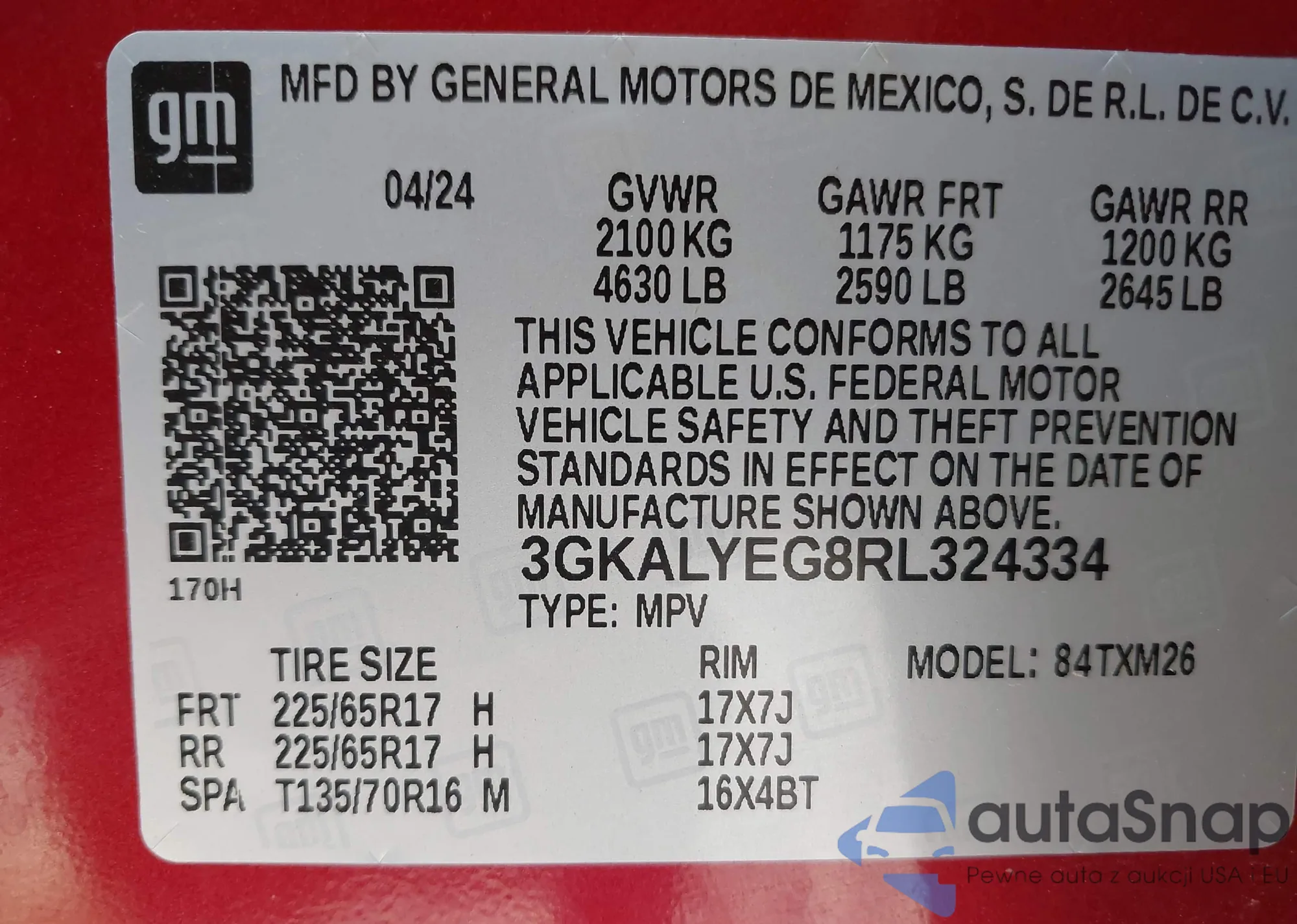 VIN: 3GKALYEG8RL324334