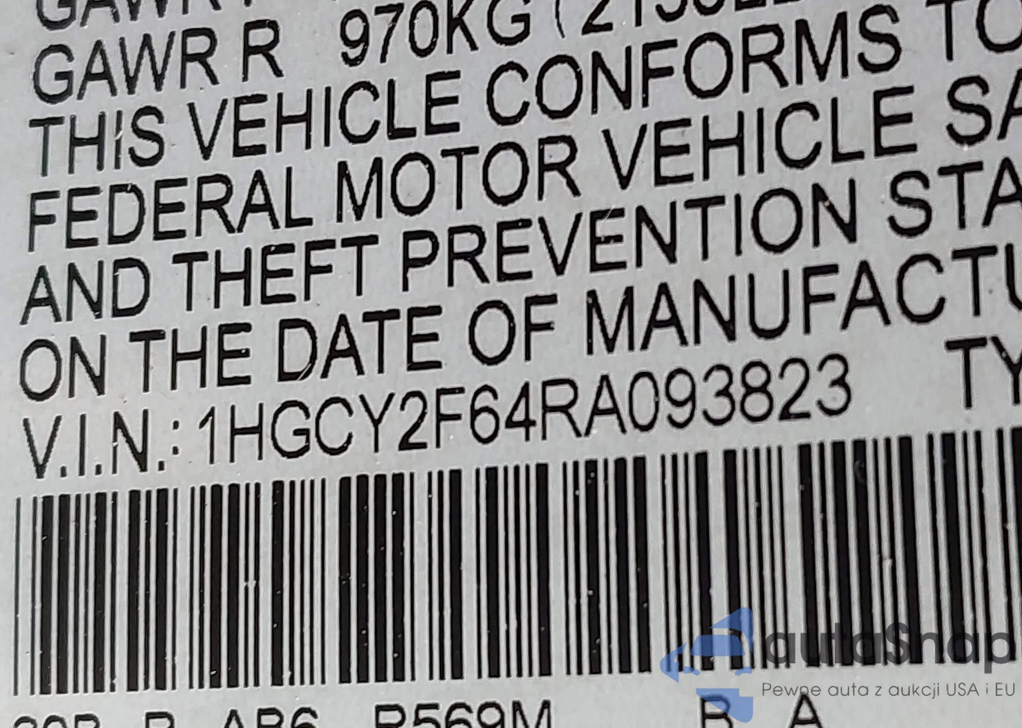VIN: 1HGCY2F64RA093823